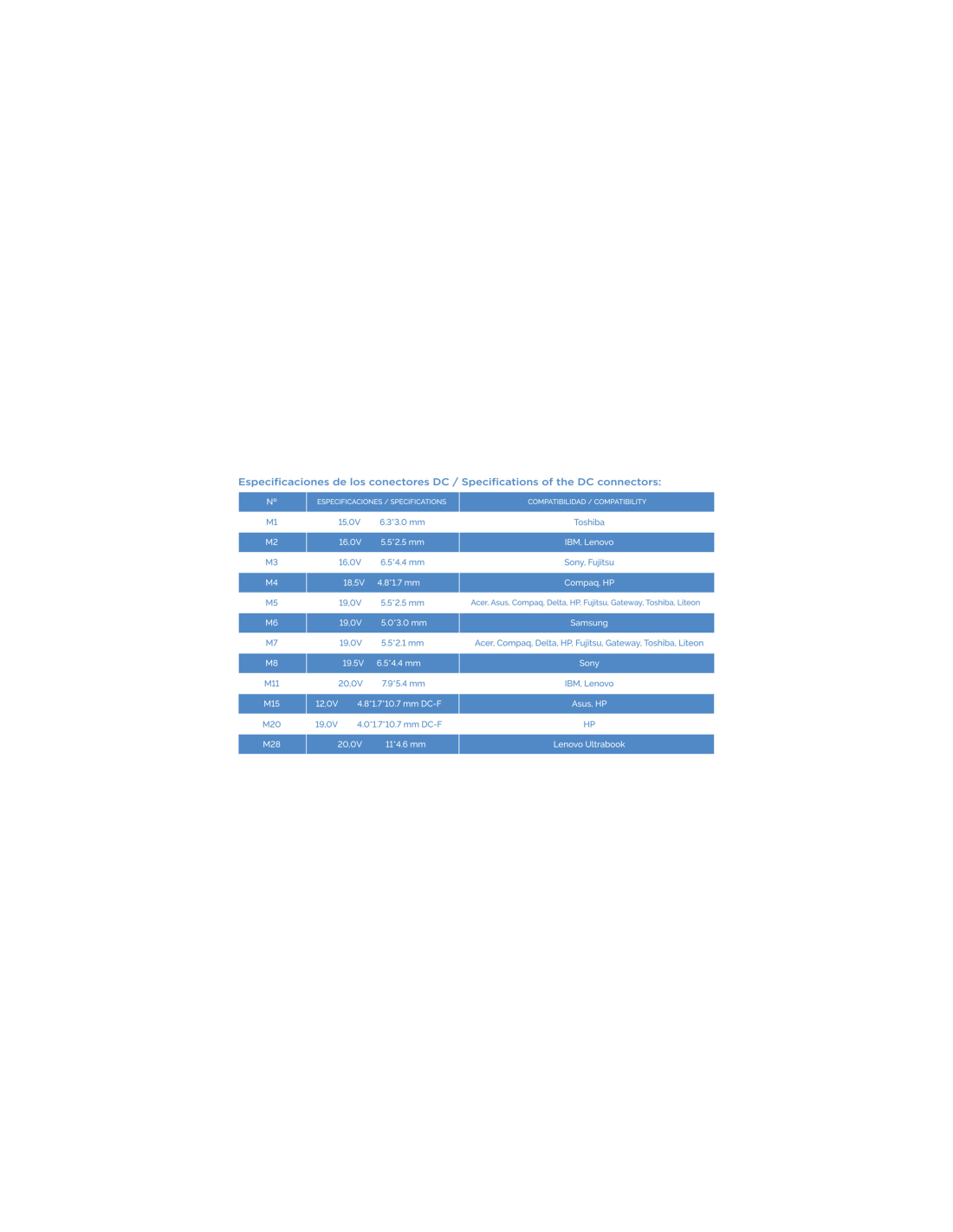 - 12 Conectores intercambiables DC para asegurar una máxima compatibilidad de portátiles
