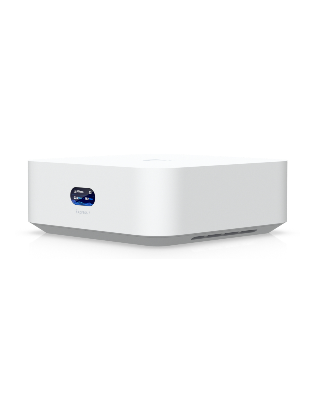 Ubiquiti UniFi Express 7. Color del producto: Blanco, Material de la carcasa: Policarbonato (PC), Indicadores LED: Estado. Tipo de antena: Interno, Ganancia de la antena (max): 6 dBi. Tipo de visualizador: LCM, Fabricante de procesador: ARM, Familia de procesador: ARM Cortex. Protocolo de routing: OSPF. Ethernet LAN, velocidad de transferencia de datos: 10,100,1000,2500,10000 Mbit/s, Estándares de red: IEEE 802.1Q, WLAN velocidad de transferencia de datos, soportada: 1,2,5.5,6,6.5,9,11,12,18,24,36,48,54,300