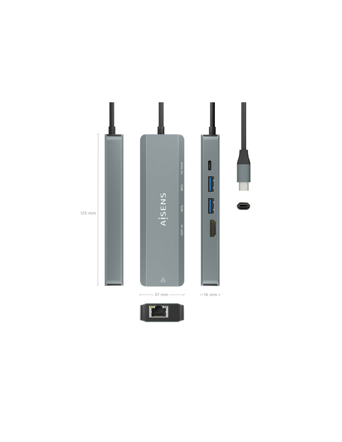AISENS® – Conversor USB-C a 1xHDMI, 1xRJ45, 2xUSB, 1xPD 100W