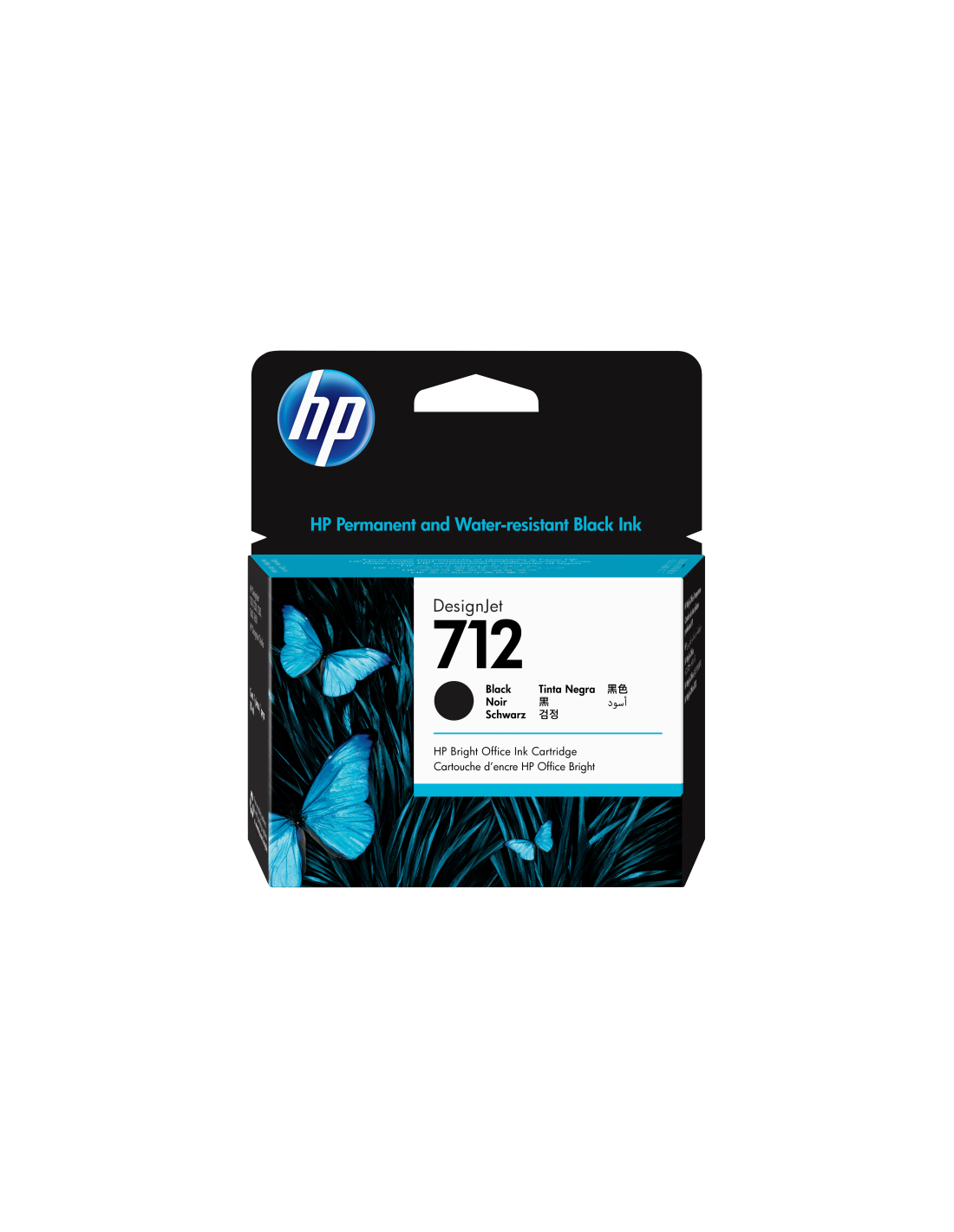 HP Cartucho de Tinta DesignJet 712 negro de 80 ml. Tipo de cartucho de tinta: Alto rendimiento (XL), Tipo de tinta negra: Tinta a base de pigmentos, Volumen de tinta negra: 80 ml, Tipo de suministro: Pack individual, Colores de impresión: Negro, Cantidad por paquete: 1 pieza(s)