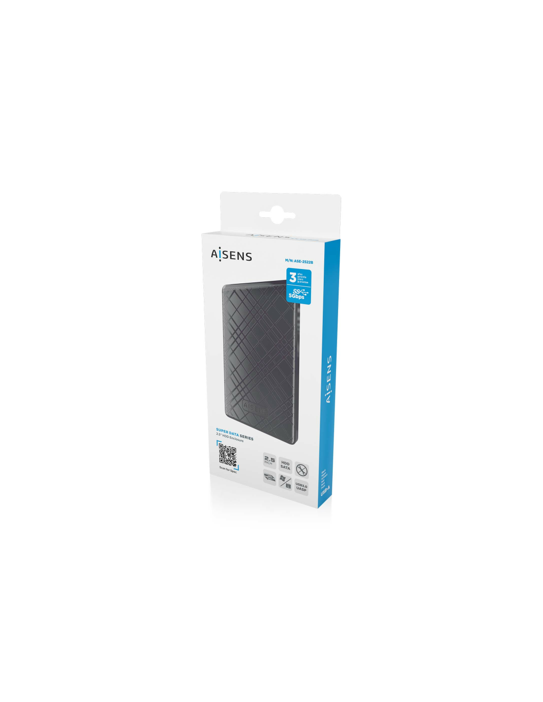 AISENS Caja Externa 2,5" ASE-2522B 9.5mm SATA a USB 3.0/USB3.1 Gen1, Negra. Tipo de producto: Carcasa de disco duro/SSD. Número de unidades de almacenamiento compatibles: 1, Tamaño de la unidad de almacenamiento: 2.5", Interfaces de disco de almacenamiento soportados: SATA, Serial ATA II, Serial ATA III, Capacidad máxima de almacenaje: 2 TB. Velocidad de transferencia de datos: 5 Gbit/s. Color del producto: Negro. Conector USB: Micro-USB B