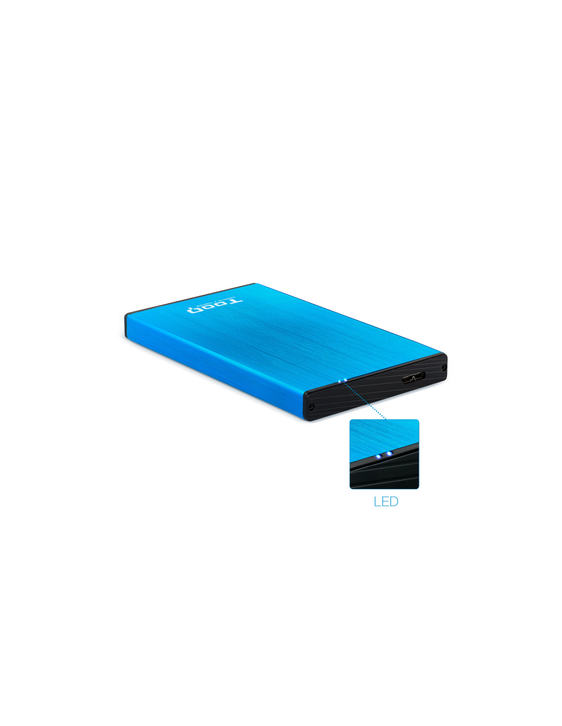 TooQ TQE-2527BL. Tipo de producto: Caja de disco duro (HDD). Número de unidades de almacenamiento compatibles: 1, Tamaño de la unidad de almacenamiento: 2.5", Interfaces de disco de almacenamiento soportados: Serial ATA II, Serial ATA III, Capacidad máxima de almacenaje: 3 TB. Velocidad de transferencia de datos: 5 Gbit/s. Color del producto: Negro, Azul. Conector USB: Micro-USB B
