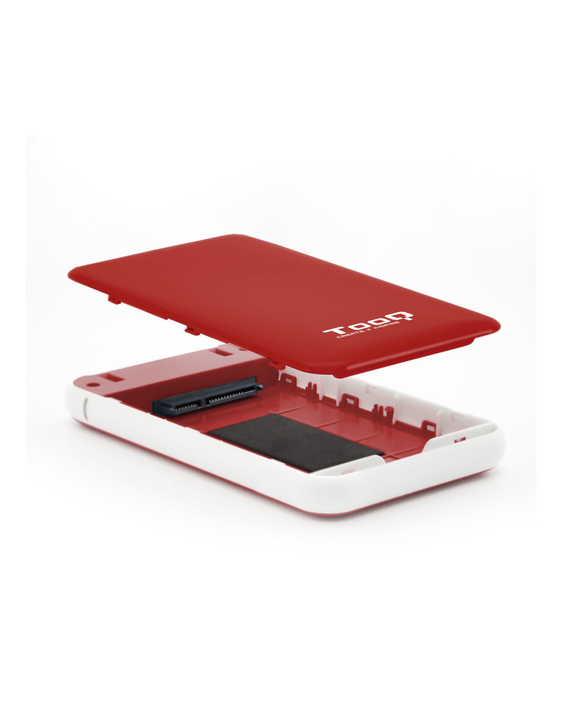 Caja externa de plástico ABS para discos duros de 2.5" SATA I, II y III de hasta 9.5mm de alto, ligera y de fácil instalación sin tornillos