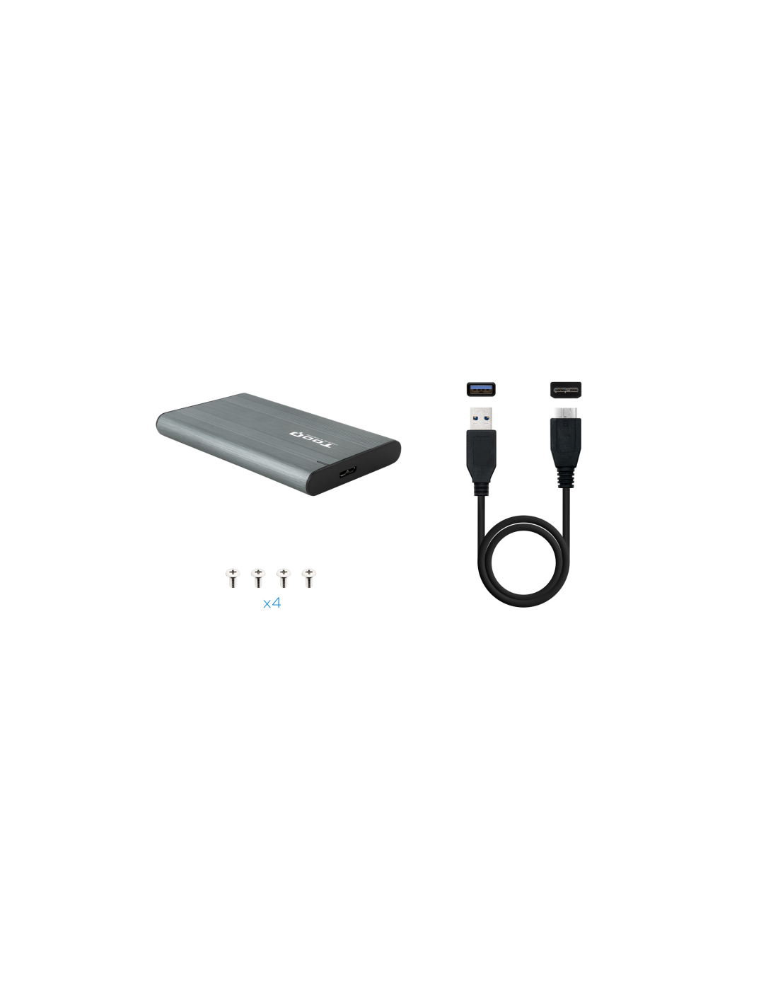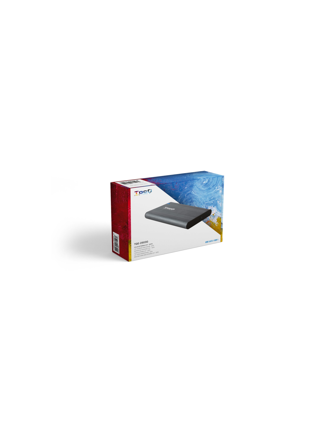 TooQ Caja Externa para Discos de 2,5” HDD/SSD, Gris. Tipo de producto: Carcasa de disco duro/SSD. Número de unidades de almacenamiento compatibles: 1, Tamaño de la unidad de almacenamiento: 2.5", Interfaces de disco de almacenamiento soportados: SATA, Serial ATA II, Serial ATA III, Capacidad máxima de almacenaje: 2 TB. Color del producto: Gris. Conector USB: Micro-USB B