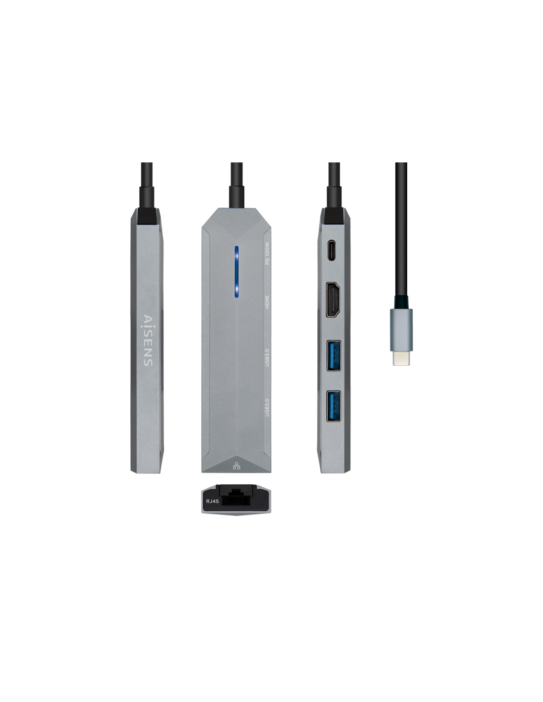 AISENS® – Conversor USB-C a 1xHDMI, 1xRJ45, 2xUSB, 1xPD 100W