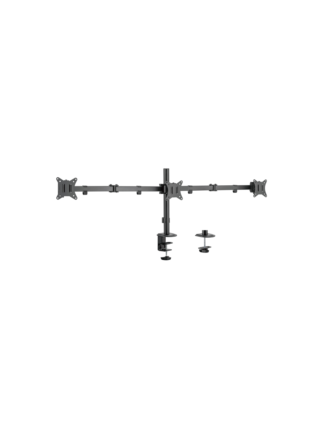 Ewent EW1513. Montaje: Abrazadera/Atornillado, Capacidad máxima de peso: 7 kg, Tamaño máximo de pantalla: 68,6 cm (27"), Compatibilidad con interfaz de montaje (min): 75 x 75 mm, Compatibilidad con interfaz de montaje (max): 100 x 100 mm. Ajustes de altura. Color del producto: Negro