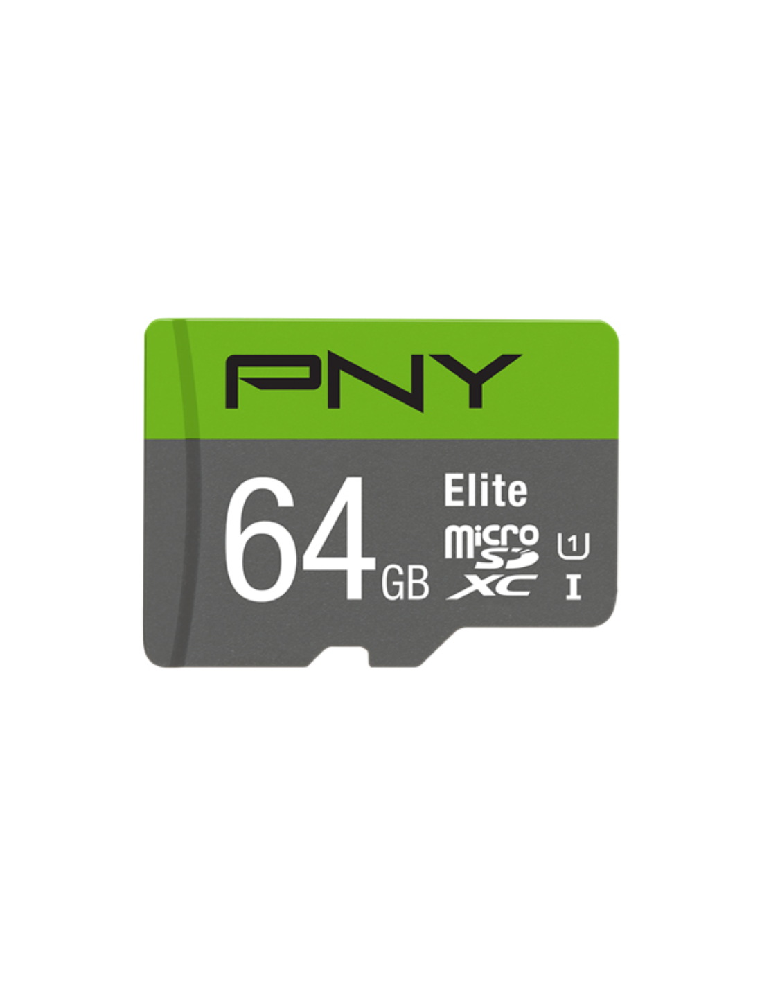 PNY Elite. Capacidad: 64 GB, Tipo de tarjeta flash: MicroSDXC, Clase de memoria flash: Clase 10, Tipo de memoria interna: UHS-I, Velocidad de lectura: 100 MB/s, Clase de velocidad UHS: Class 1 (U1). Color del producto: Verde, Gris