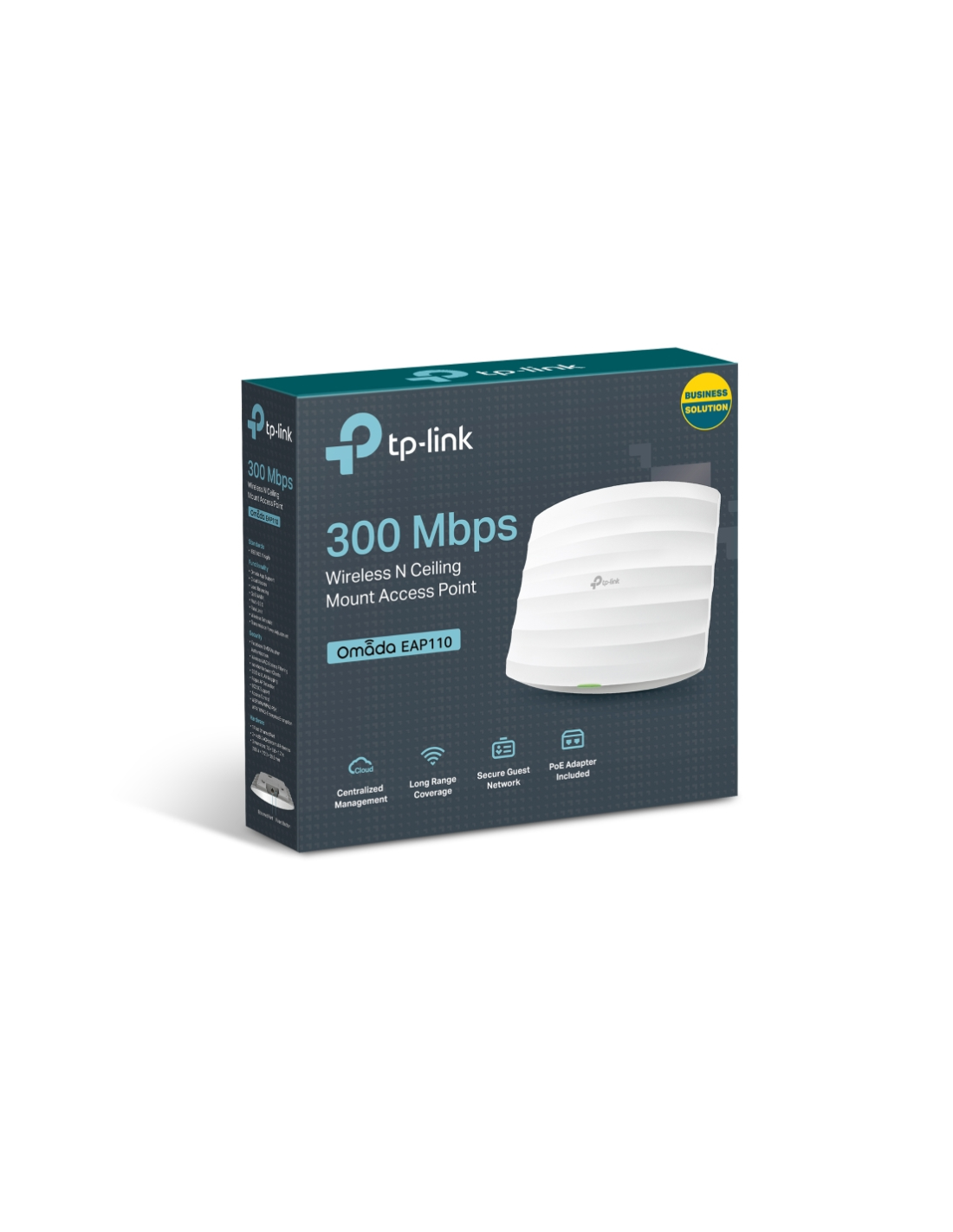 TP-Link EAP110. 2,4 GHz, Rango máximo de transferencia de datos: 300 Mbit/s. Algoritmos de seguridad soportados: 64-bit WEP, 128-bit WEP, 152-bit WEP, HTTPS, SNMP, SNMPv2, SSH, WPA, WPA-PSK, WPA2-Enterprise,.... Ethernet LAN, velocidad de transferencia de datos: 10,100 Mbit/s. Energía sobre Ethernet (PoE). Color del producto: Blanco
