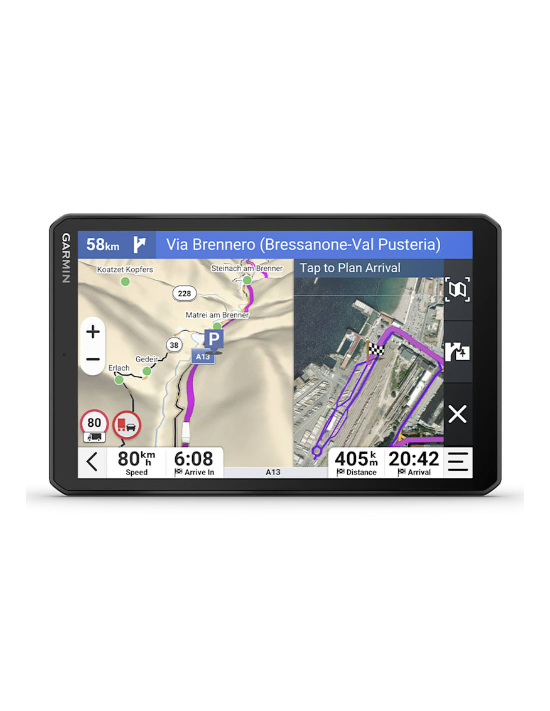 La pantalla táctil extragrande de 8? proporciona una imagen nítida de alta resolución para facilitar la lectura mientras conduces. Selecciona la vista que mejor se adapte a tu cabina: horizontal o vertical.