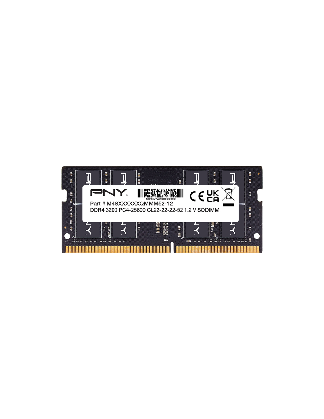 PNY Performance. Componente para: Portátil, Memoria interna: 16 GB, Diseño de memoria (módulos x tamaño): 1 x 16 GB, Tipo de memoria interna: DDR4, Velocidad de memoria del reloj: 3200 MHz, Forma de factor de memoria: 260-pin SO-DIMM, Latencia CAS: 22