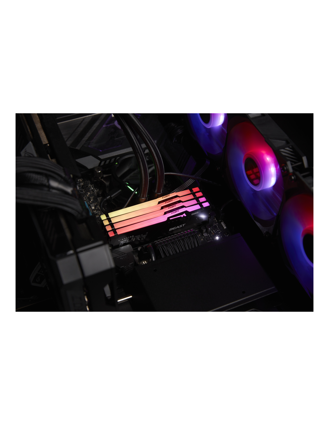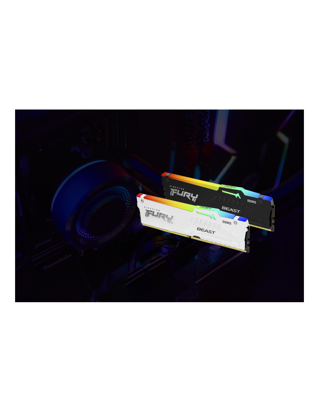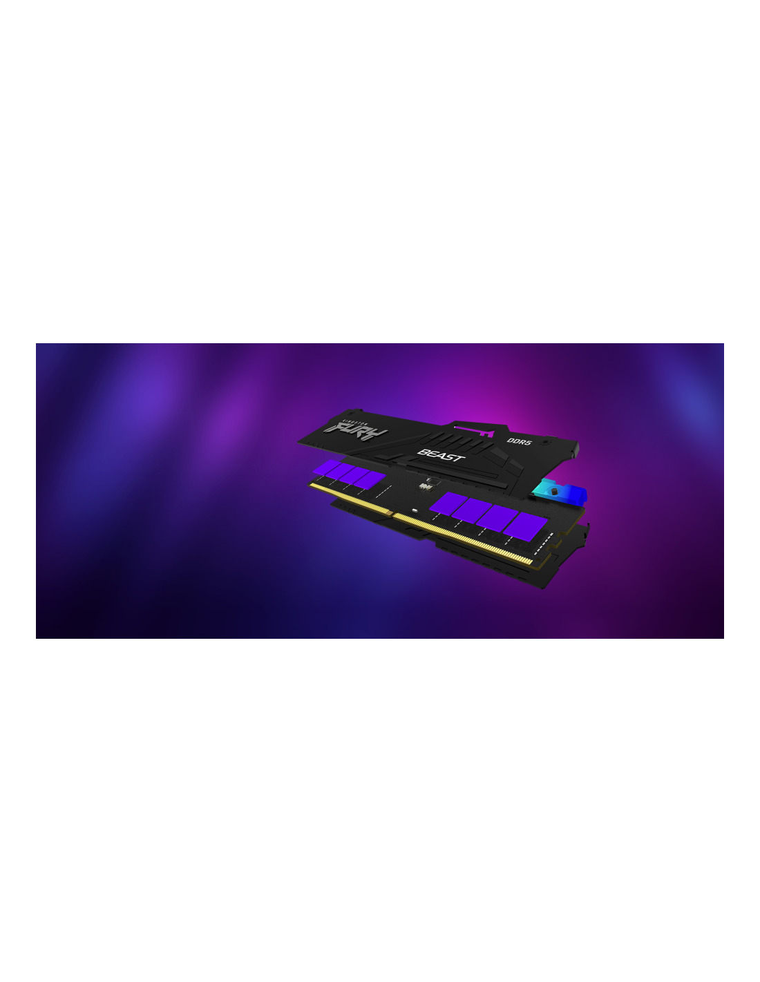 Kingston FURY Beast DDR5 RGB incorpora sobreaceleración automática Plug N Play a 4800 MT/s2, así como opciones para Intel® XMP 3.0 o AMD EXPO™, dos nuevas especificaciones de sobreaceleración DDR5 que incluyen perfiles personalizables de velocidad y temporización.