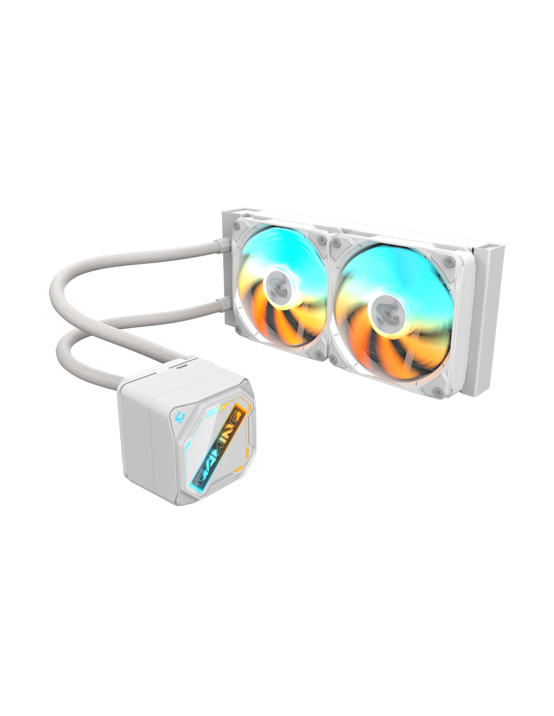 GIGABYTE GAMING 240 ICE Refrigeración Líquida para CPU - 2x120mm Ventiladores ARGB, mecanismo de enclavamiento deslizante, DAISY-CHAIN, Compatible con Intel LGA 1851 y AMD AM5. Tipo: Sistema de refrigeración líquida todo en uno, Diámetro de ventilador: 12 cm, Presión máxima de aire: 2,73 mmH2O. Color del producto: Blanco
