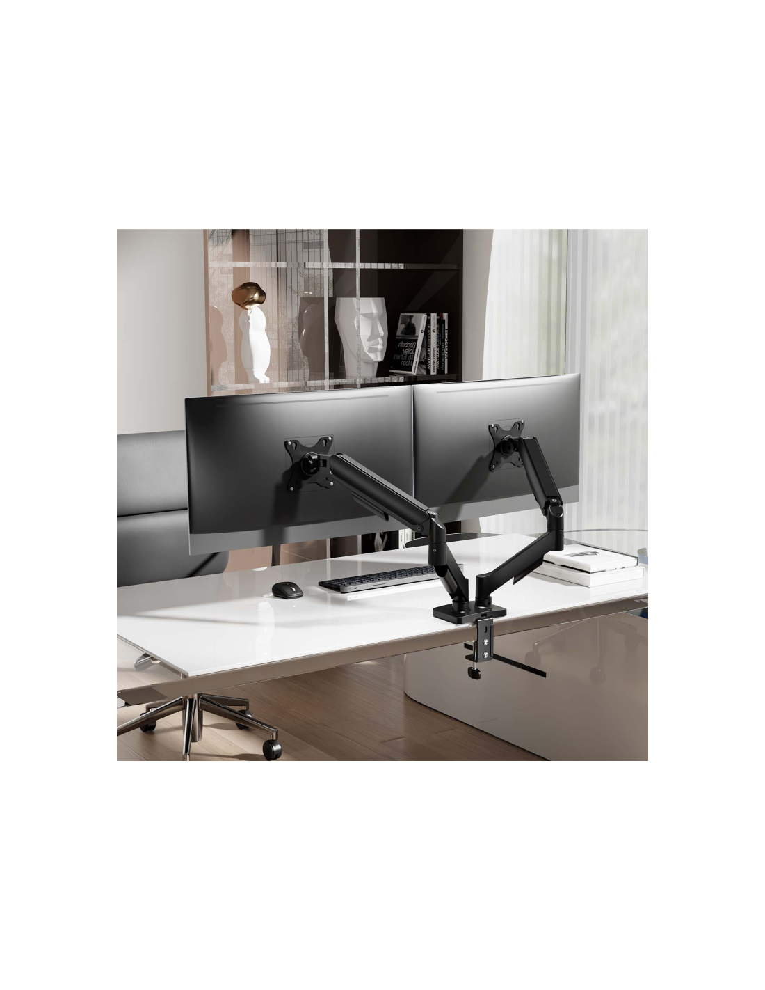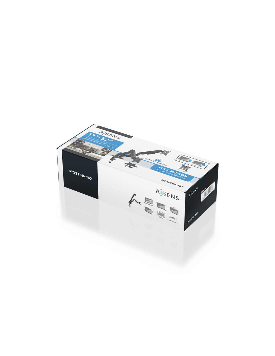 AISENS Soporte de Mesa Eco Contrapeso Giratorio e Inclinable para Monitor/TV 9KG (3 Pivotes, 2 Brazos) de 17"-32", Negro. Montaje: Abrazadera/Atornillado, Capacidad máxima de peso: 18 kg, Tamaño mínimo de pantalla: 43,2 cm (17"), Tamaño máximo de pantalla: 81,3 cm (32"), Compatibilidad con interfaz de montaje (min): 75 x 75 mm, Compatibilidad con interfaz de montaje (max): 100 x 100 mm. Ajustes de altura, Ángulo de inclinación: -90 - 90°. Color del producto: Negro