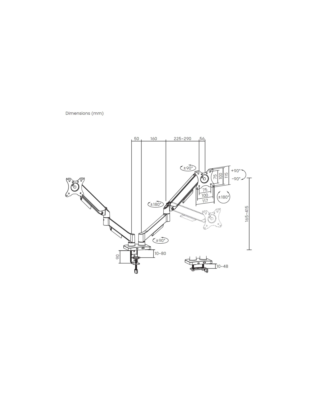 - Rango de peso soportado por brazo: 2-9kgs (El peso del monitor tiene que estar dentro de este rango)
