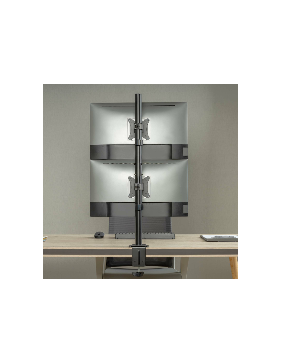 AISENS Soporte de mesa eco giratorio e inclinable para 2 Monitor/TV 9kg de 17-32, Negro. Montaje: Abrazadera/Atornillado, Capacidad máxima de peso: 9 kg, Tamaño mínimo de pantalla: 43,2 cm (17"), Tamaño máximo de pantalla: 81,3 cm (32"), Compatibilidad con interfaz de montaje (min): 75 x 75 mm, Compatibilidad con interfaz de montaje (max): 100 x 100 mm. Ángulo de giro (alcance): -90 - 90°, Ángulo de inclinación: -45 - 45°. Color del producto: Negro