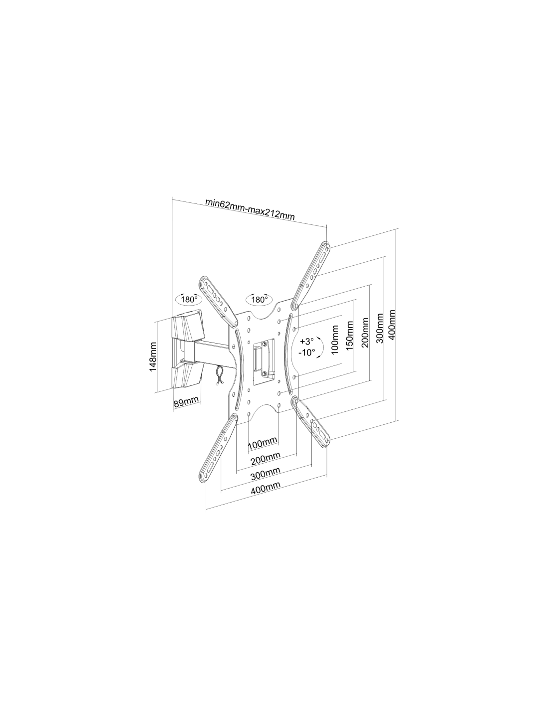 Distancia de la pared: ajustable entre 62 y 212mm (depende de la instalación y del espacio disponible)