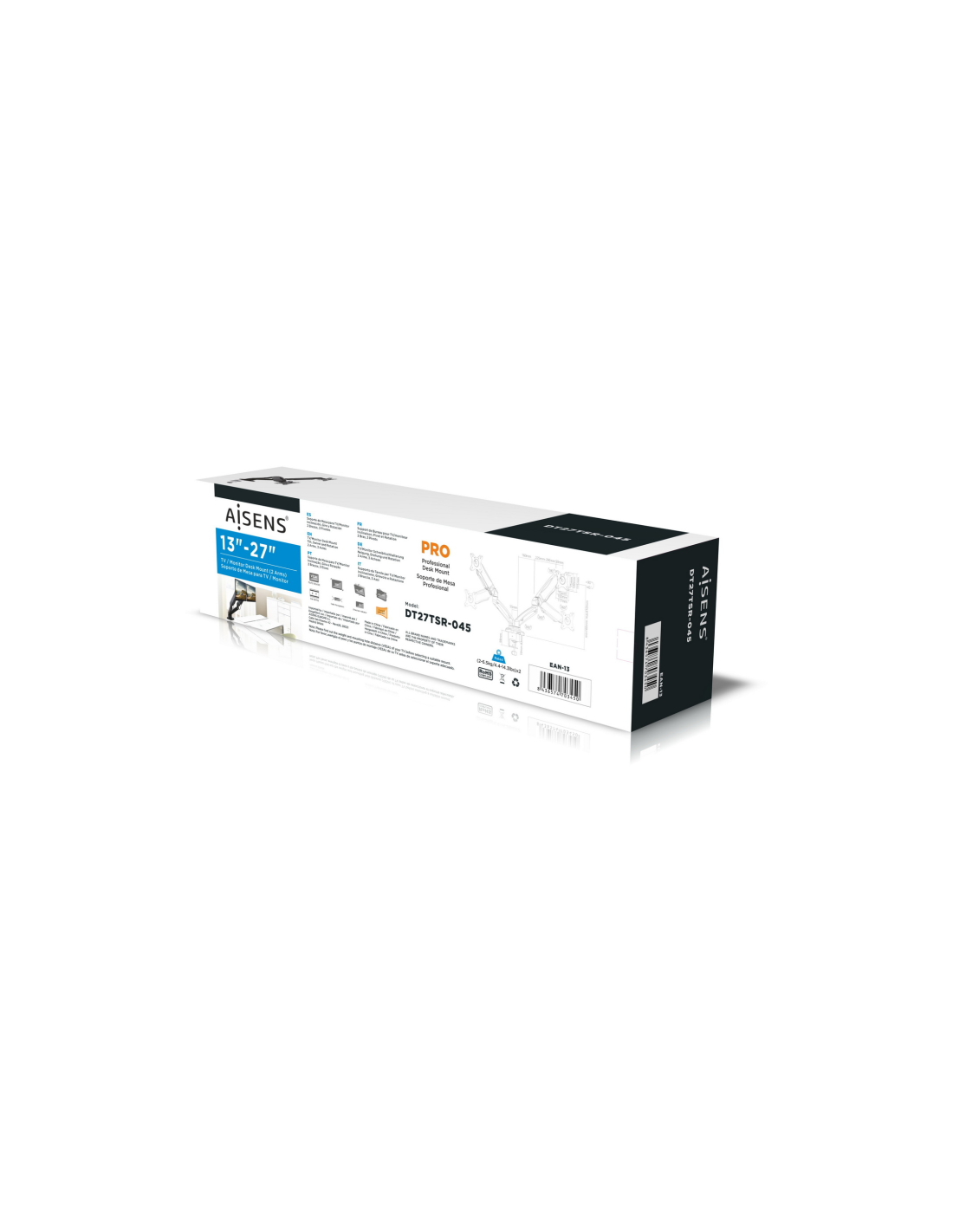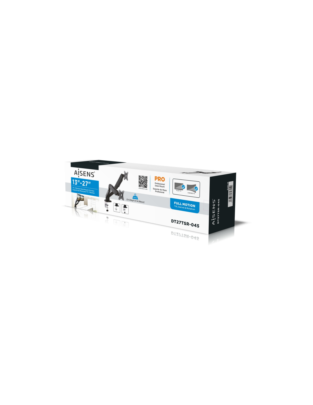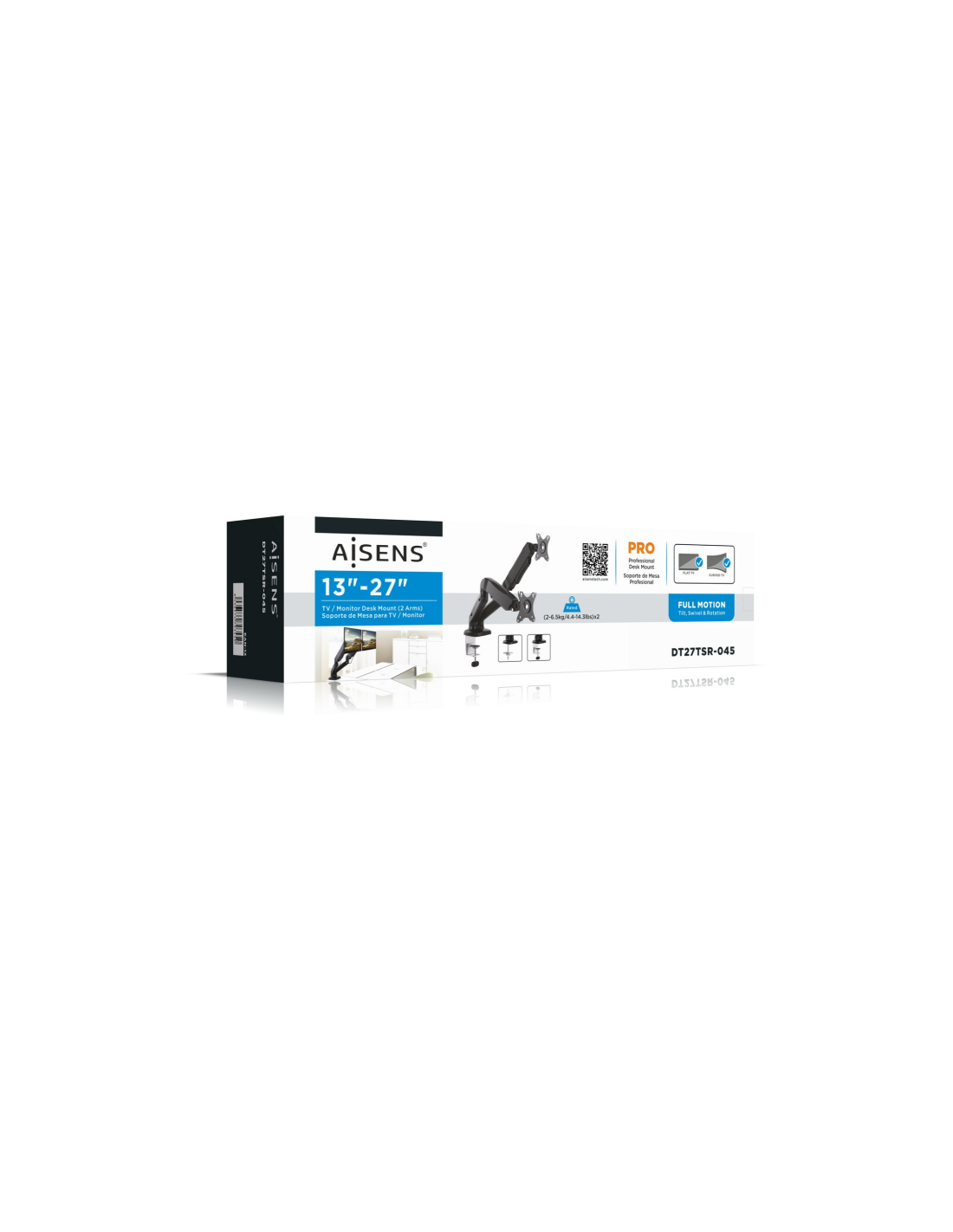 AISENS DT27TSR-045. Montaje: Atornillado, Capacidad máxima de peso: 9 kg, Tamaño mínimo de pantalla: 33 cm (13"), Tamaño máximo de pantalla: 81,3 cm (32"), Compatibilidad con interfaz de montaje (min): 75 x 75 mm, Compatibilidad con interfaz de montaje (max): 100 x 100 mm. Ángulo de inclinación: -45 - 90°. Color del producto: Negro