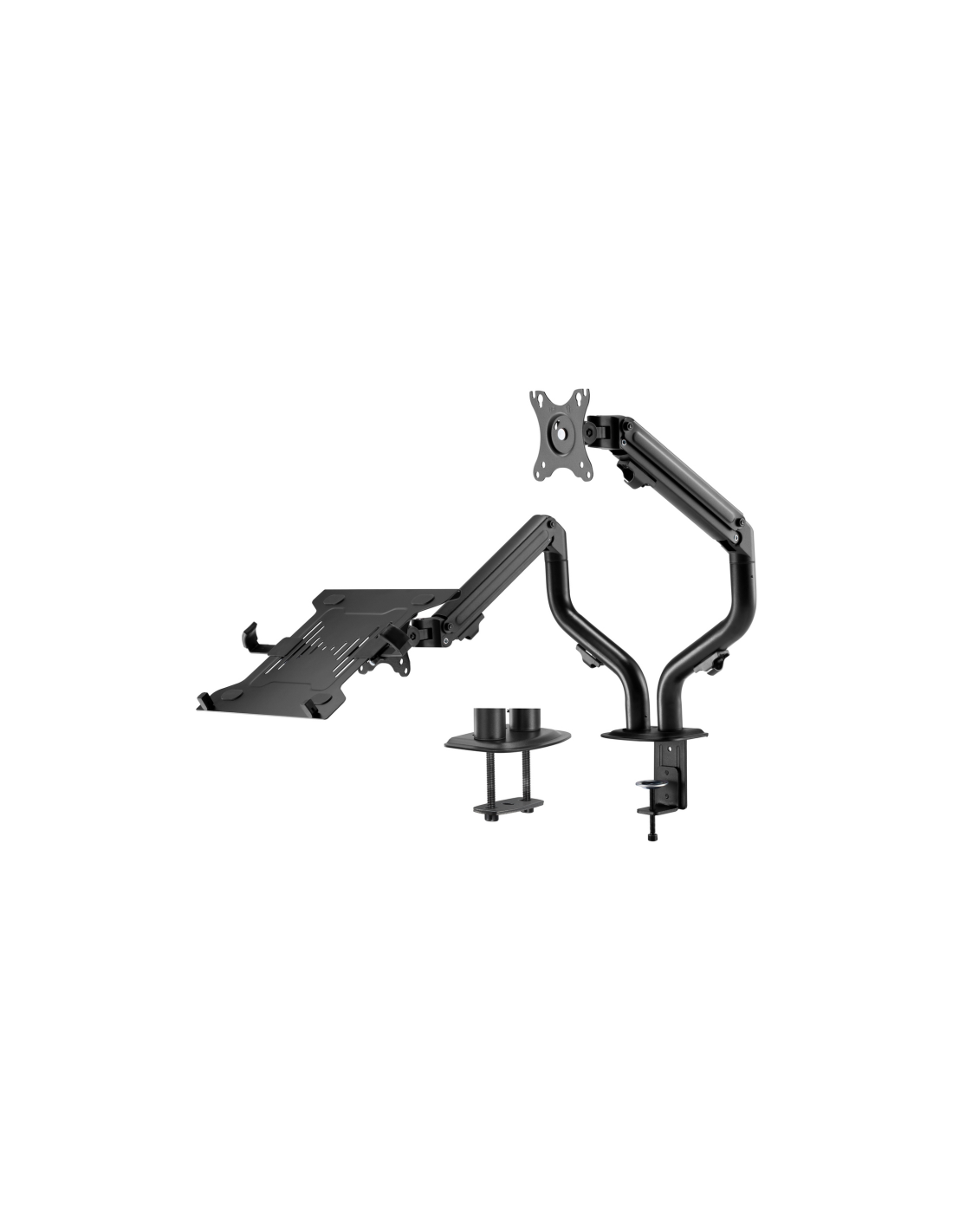 AISENS Soporte de Mesa Contrapeso Giratorio e Inclinable para Portatil y Monitor/TV 8Kg de 17-32, Negro. Montaje: Abrazadera/Atornillado, Capacidad máxima de peso: 12,5 kg, Tamaño mínimo de pantalla: 43,2 cm (17"), Tamaño máximo de pantalla: 81,3 cm (32"), Compatibilidad con interfaz de montaje (min): 75 x 75 mm, Compatibilidad con interfaz de montaje (max): 100 x 100 mm. Ajustes de altura, Ángulo de inclinación: -45 - 90°. Color del producto: Negro