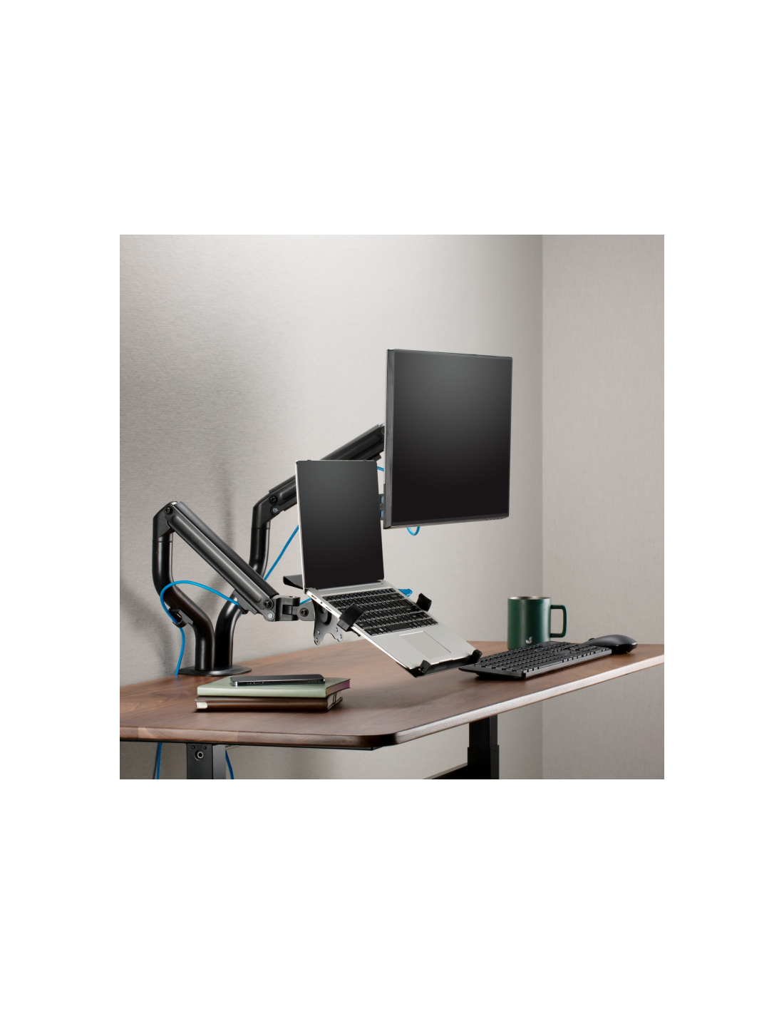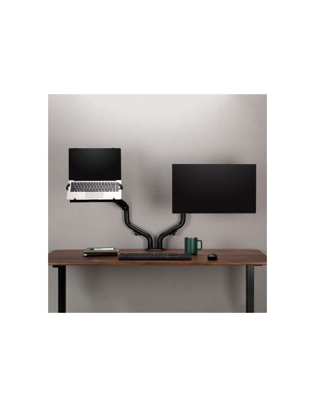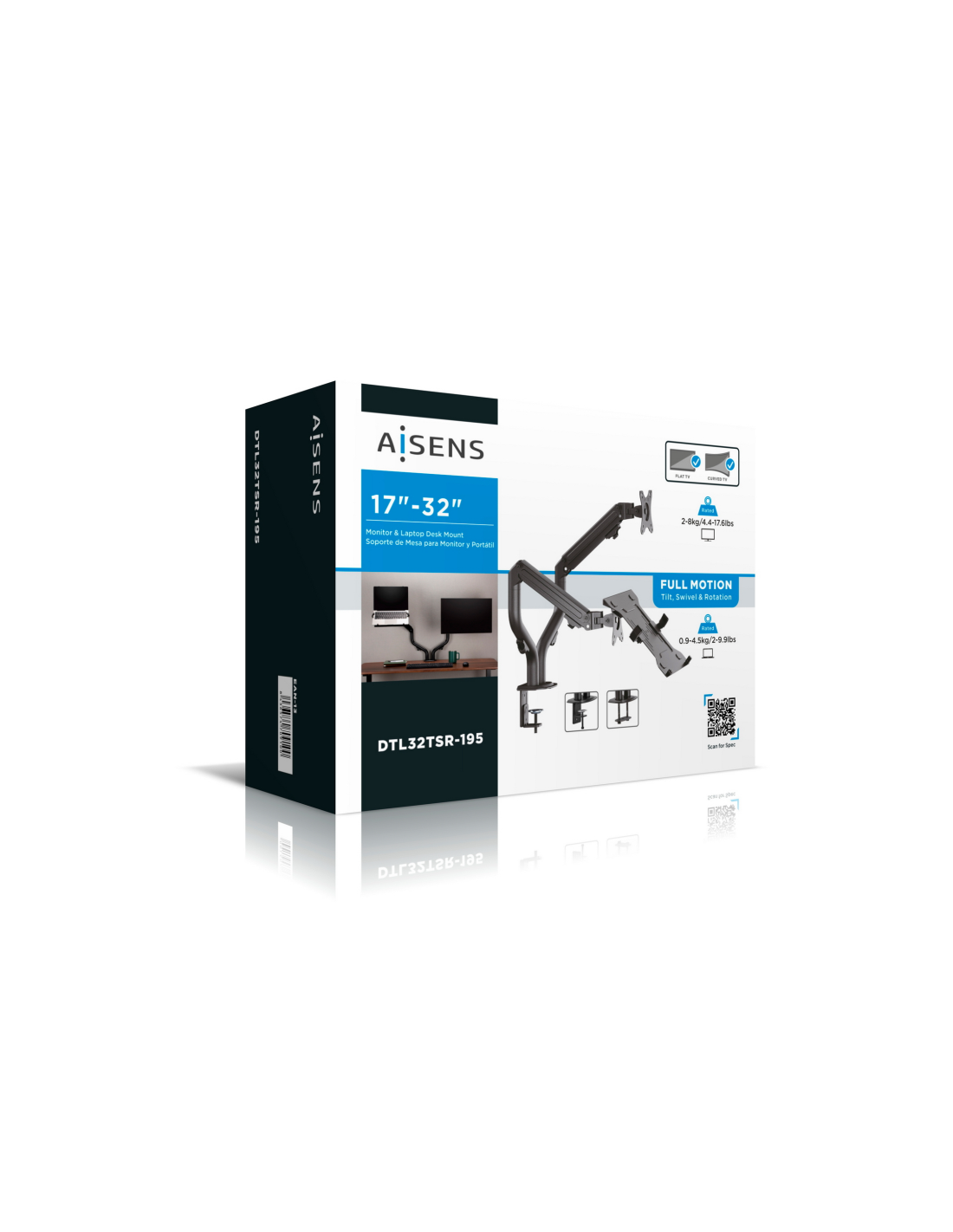 AISENS® – Soporte de mesa contrapeso giratorio e inclinable para portátil y monitor/TV (3 pivotes, 2 brazos) de 17”-32”
