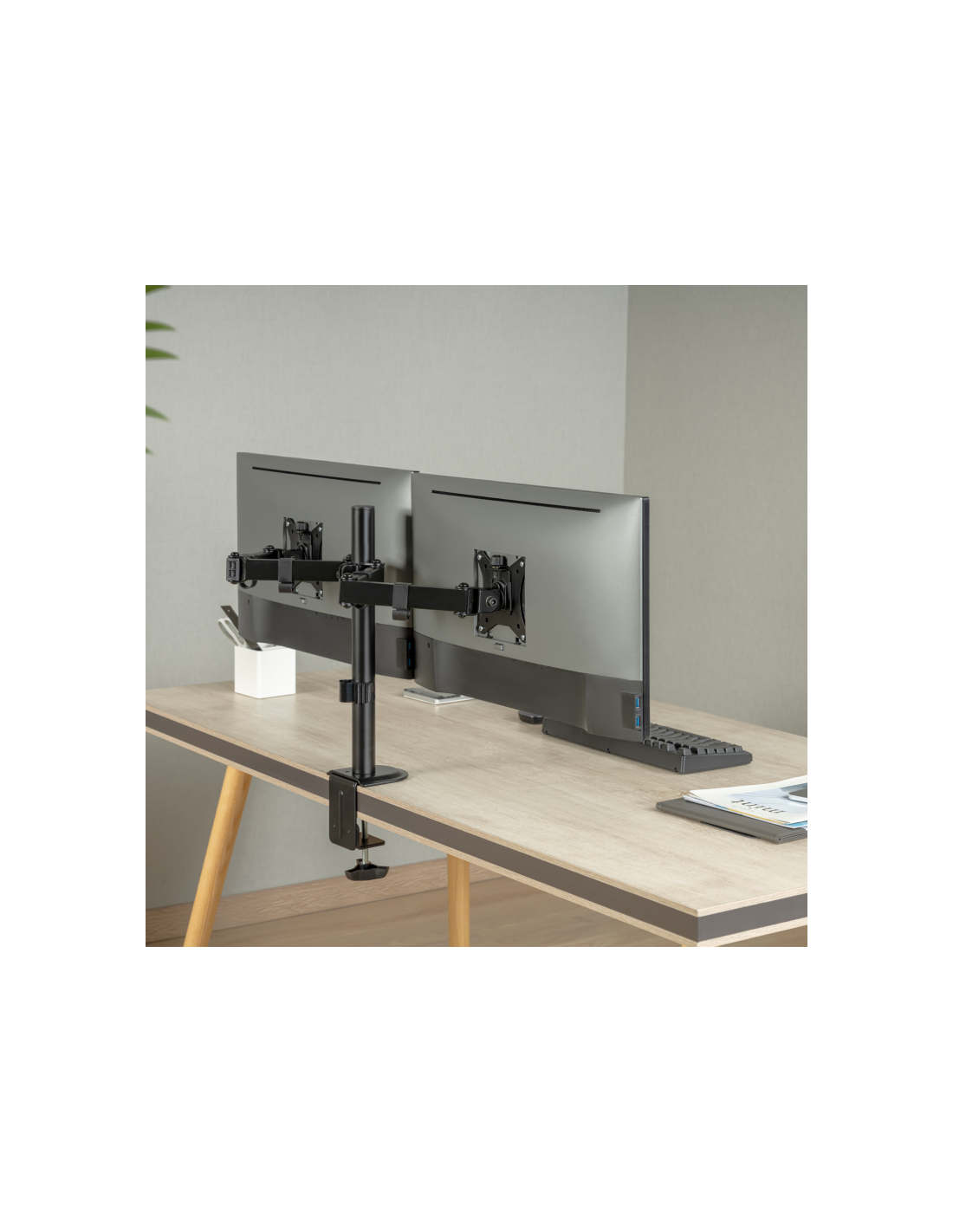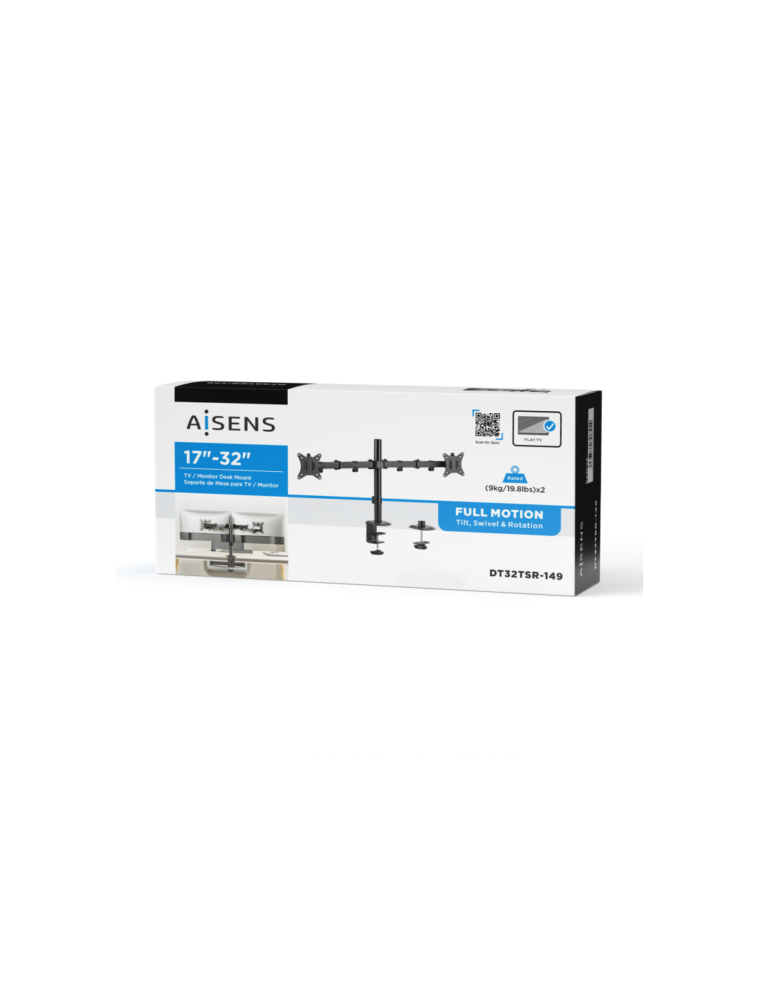 AISENS® – Soporte de mesa eco giratorio e inclinable para monitor/TV (3 pivotes, 2 brazos) de 17”-32”