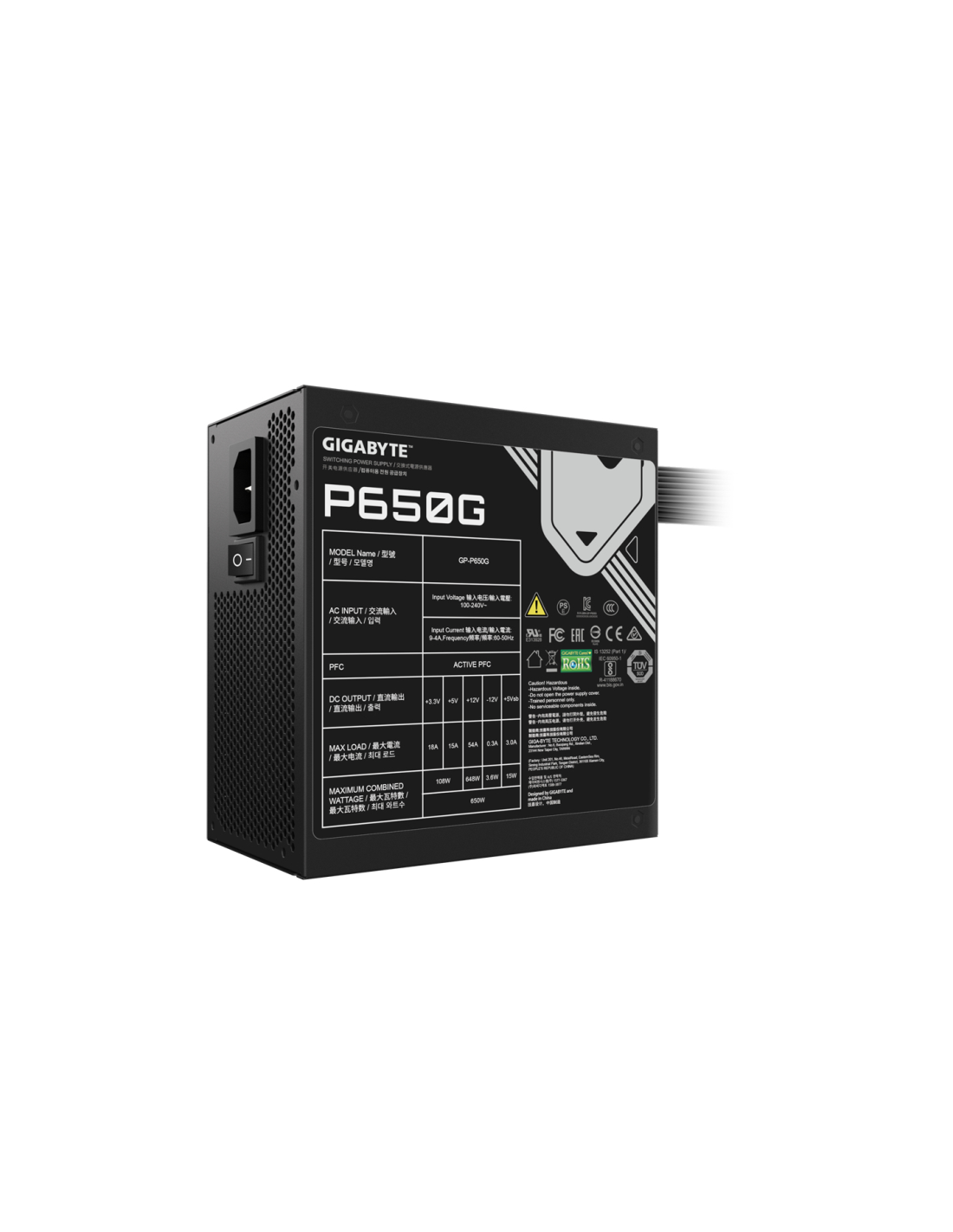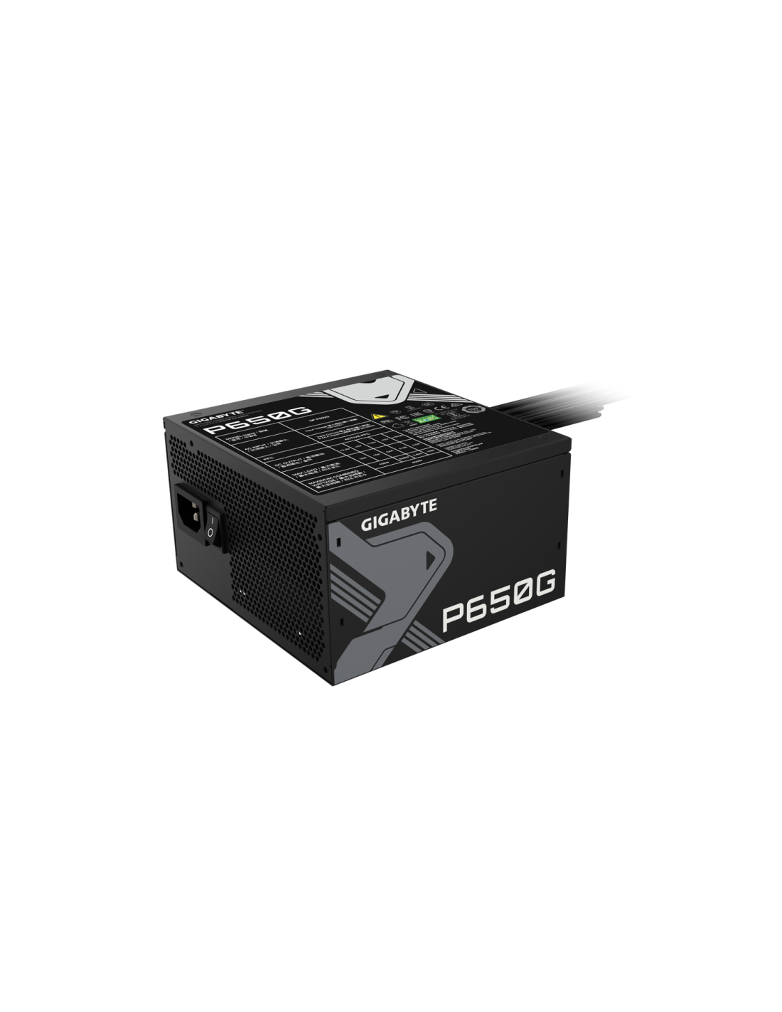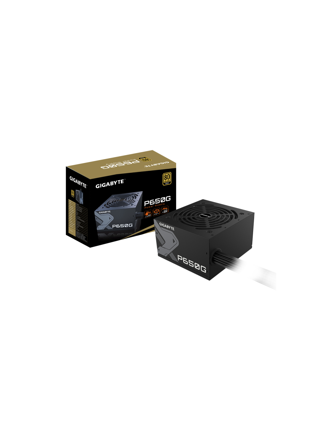 GIGABYTE GP-P650G. Potencia total: 650 W, Voltaje de entrada AC: 100 - 240 V, Corriente de entrada: 12 - 6 A. Alimentador de energía para tarjeta madre: 20+4 pin ATX, Longitud del cable de alimentación de la placa base: 50 cm, Longitud del cable de alimentación SATA: 150,500 mm. Utilizar con: PC, Factor de forma de fuente de alimentación (PSU): ATX, Certificación 80 PLUS: 80 PLUS Bronze. Color del producto: Negro, Tipo de enfriamiento: Activo, Diámetro de ventilador: 12 cm. Ancho: 140 mm, Profundidad: 150 m