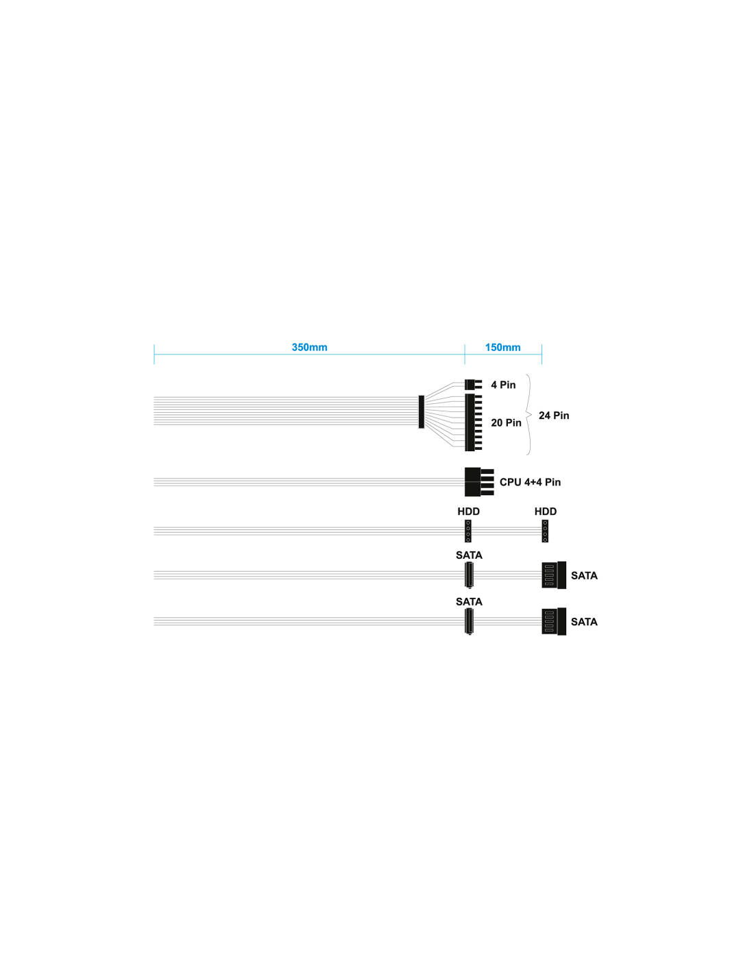 > 4 conectores SATA (350+150mm)x2