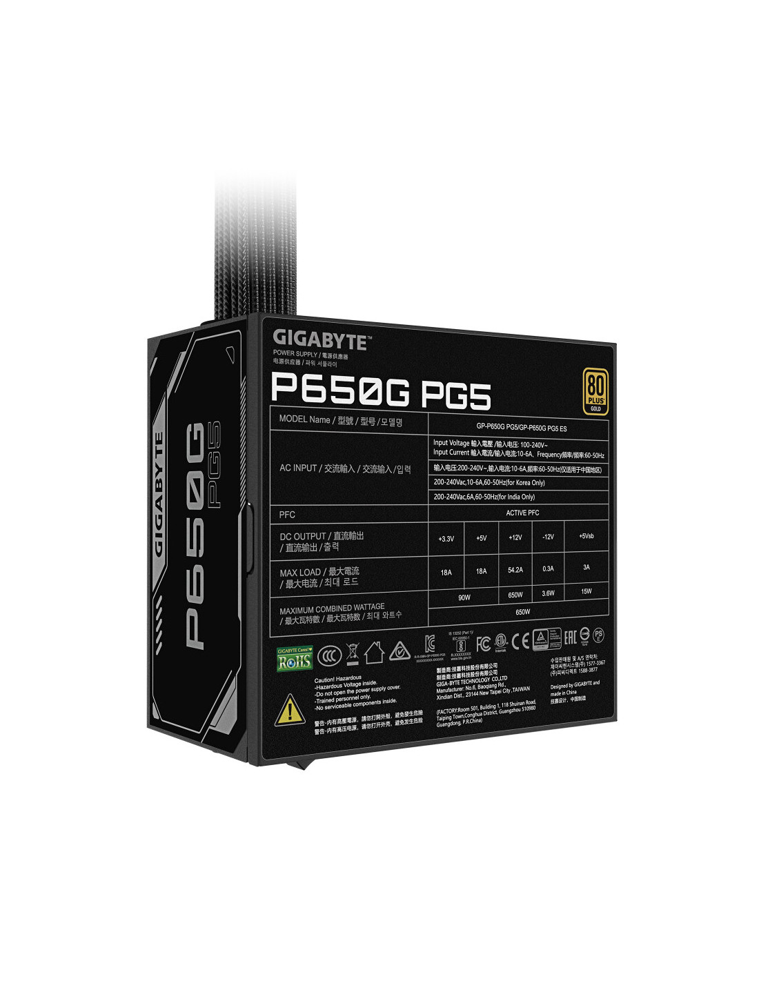 GIGABYTE P650G PCIE 5.1 Fuente de alimentación – PCIe 5.1, 80 PLUS Silver, ventilador de 120mm, compatible con ATX 3.1, enchufe