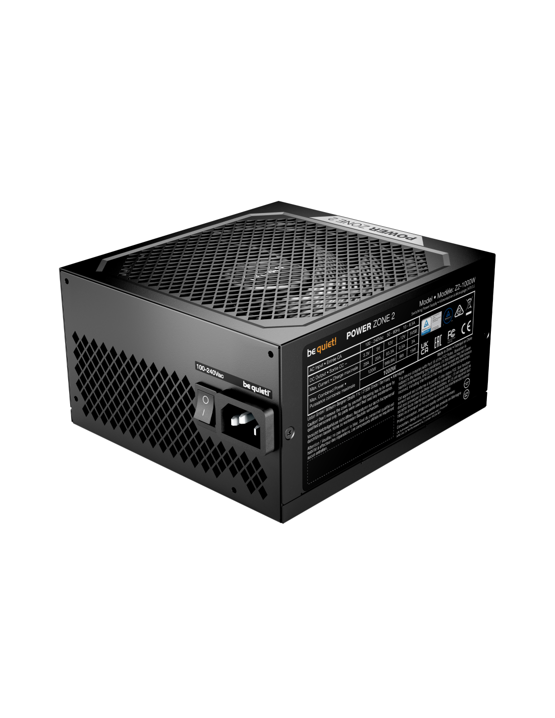 be quiet! POWER ZONE 2 1000W. Potencia total: 1000 W, Voltaje de entrada AC: 100 - 240 V, Máxima energía: 1070 W. Alimentador de energía para tarjeta madre: 20+4 pin ATX, Longitud del cable de alimentación de la placa base: 60 cm, Longitud del cable de alimentación SATA: 550,700,850,1000 mm. Utilizar con: PC, Factor de forma de fuente de alimentación (PSU): ATX, Certificación 80 PLUS: 80 PLUS Platinum. Color del producto: Negro, Tipo de enfriamiento: Activo, Diámetro de ventilador: 14 cm. Certificados de co