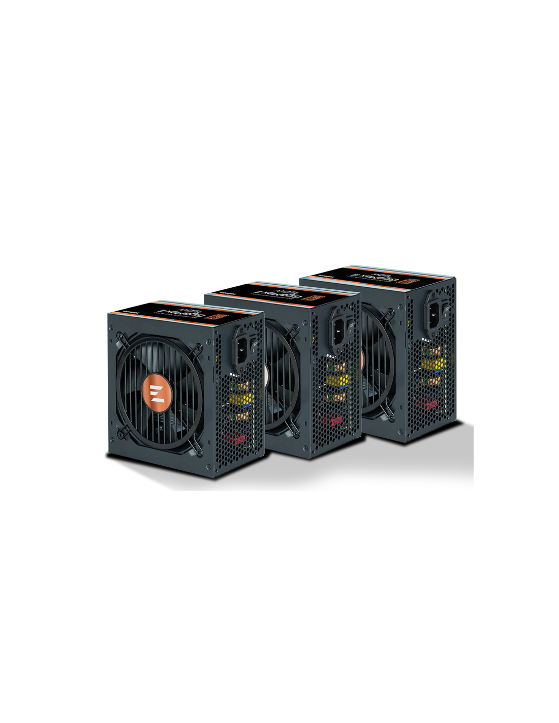Zalman GigaMax III. Potencia total: 750 W, Voltaje de entrada AC: 200 - 240 V, Frecuencia de entrada AC: 50/60 Hz. Tipo de cableado: Semimondular. Utilizar con: PC, Factor de forma de fuente de alimentación (PSU): ATX, Certificación 80 PLUS: 80 PLUS Bronze. Color del producto: Negro, Diámetro de ventilador: 12 cm. Certificados de conformidad: CB, CE, EAC, KC, RCM, RoHS