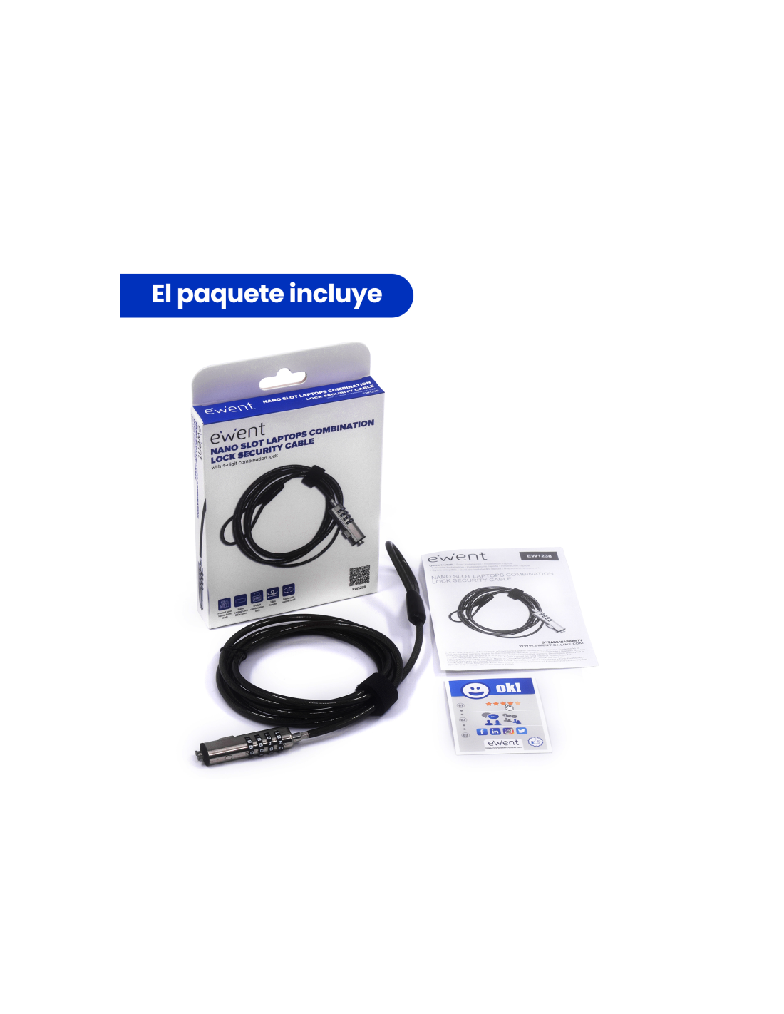 COMPATIBILIDAD: Este cable de seguridad es compatible con dispositivos que cuenten con ranuras de seguridad tipo Kensington, haciéndolo perfecto para portátiles, monitores, televisiones y otros dispositivos valiosos que requieran protección. Este cable de seguridad no es válido para ranurad WEDGE, para ello deberá utilizar nuestro cable de seguridad Ewent EW1243.