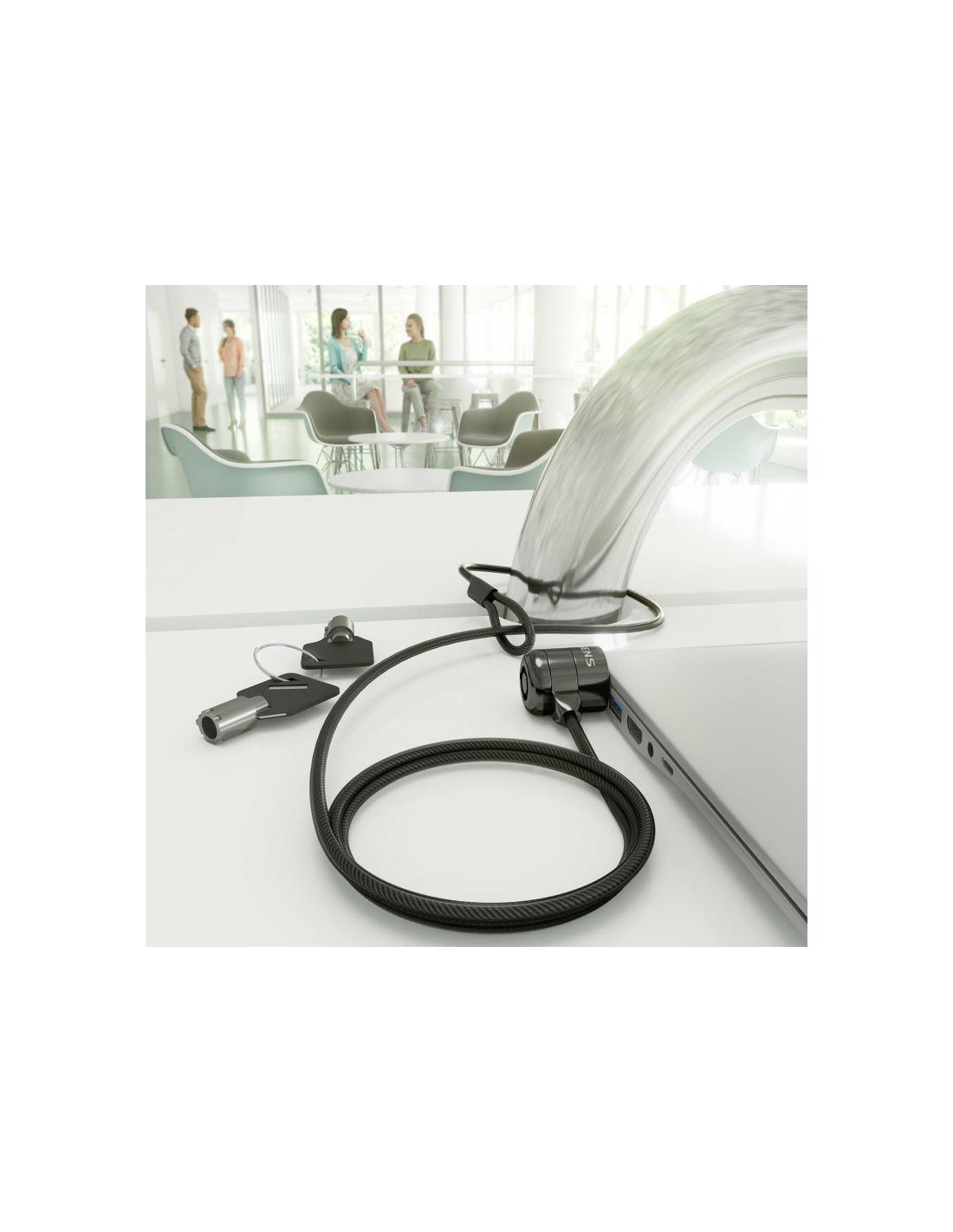 AISENS® – Cable de seguridad de acero con cerradura de llave para ordenador, monitor, portátil etc.
