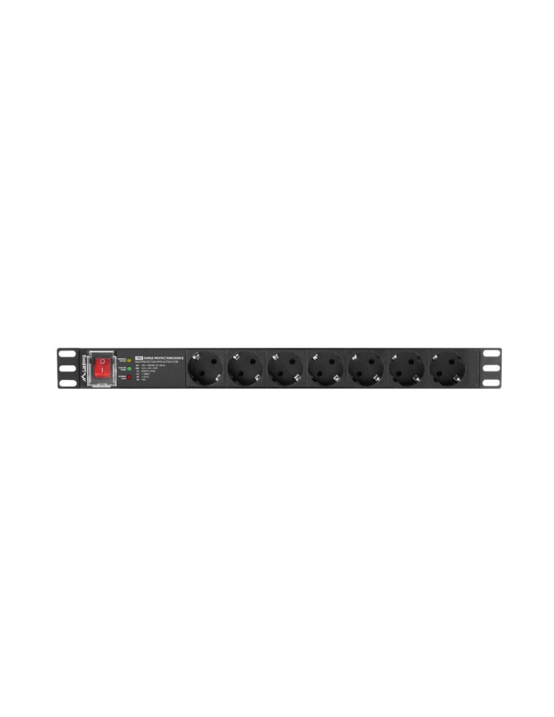 Lanberg PDU-PRO-07F-0200-BK. PDU tipos: Conmutado, Capacidad del rack: 1U, Tipo: Monofásico. Cantidad de salidas AC: 6 salidas AC, Tipo de salida AC: Tipo F. Longitud de cable: 2 m. Voltaje nominal de entrada: 220 - 250 V, Máxima corriente: 16 A, Frecuencia de entrada AC: 50 - 60 Hz. Ancho: 481,7 mm, Profundidad: 45 mm, Altura: 45 mm