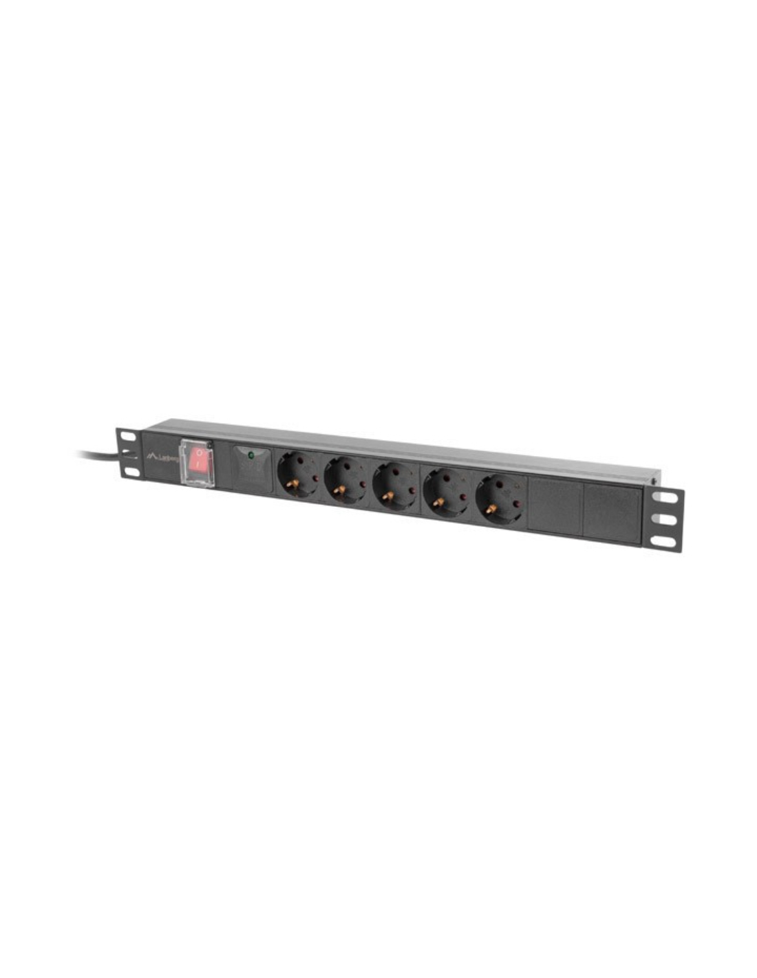 Lanberg PDU-05F-0200-BK. PDU tipos: Conmutado, Capacidad del rack: 1U, Tipo: Monofásico. Cantidad de salidas AC: 5 salidas AC, Tipo de salida AC: Tipo F, Conector: Tipo F. Longitud de cable: 2 m. Voltaje nominal de entrada: 230 V, Máxima corriente: 16 A, Funciones de protección de poder: Sobreintensidad, Supresor de sobretensiones. Ancho: 482,7 mm, Profundidad: 45 mm, Altura: 45 mm