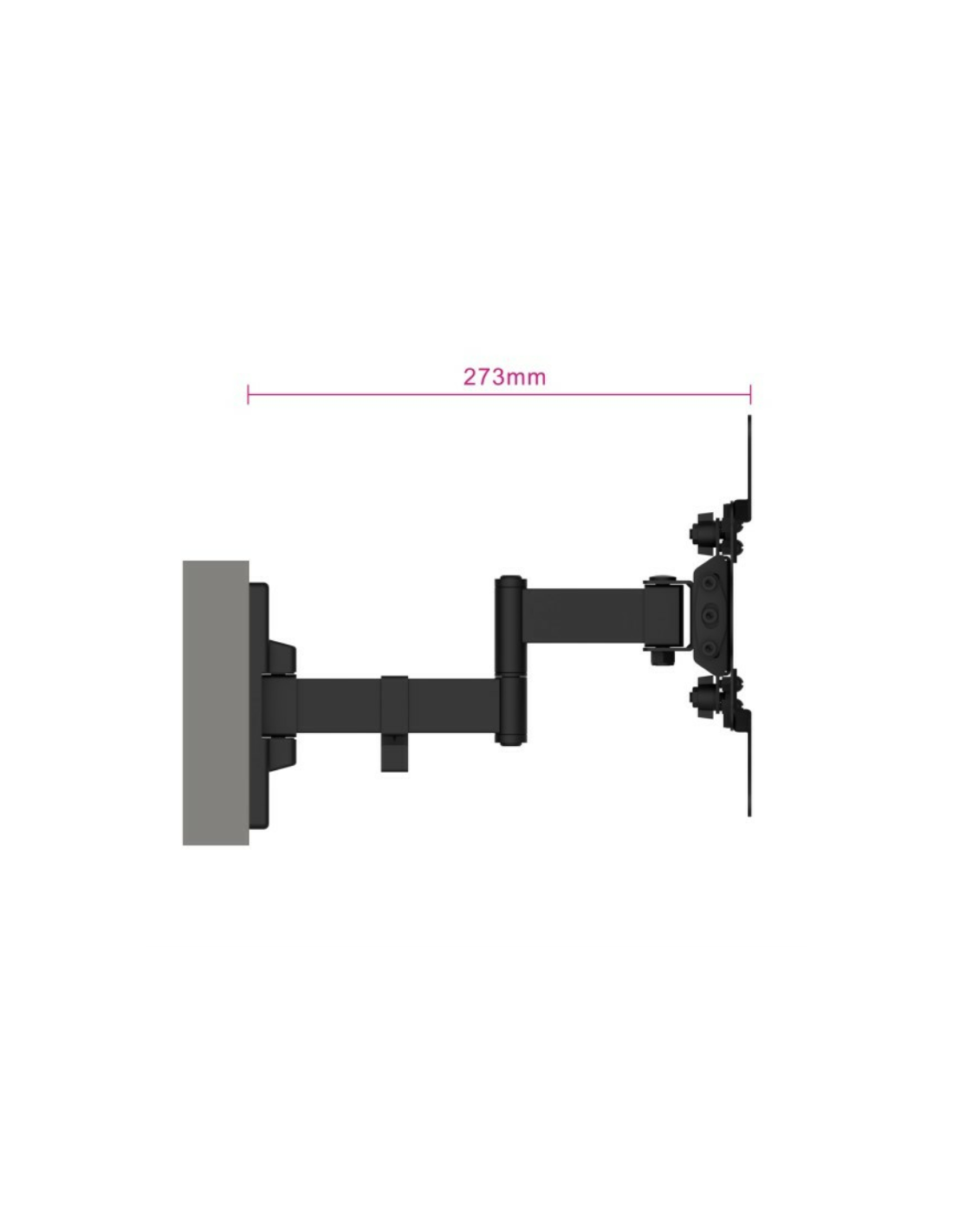 Ewent EW1522. Capacidad máxima de peso: 20 kg, Tamaño mínimo de pantalla: 33 cm (13"), Tamaño máximo de pantalla: 106,7 cm (42"), Compatibilidad con interfaz de montaje (min): 75 x 75 mm, Compatibilidad con interfaz de montaje (max): 200 x 200 mm. Rango de ajustes de altura: 60 - 273 mm, Ángulo de inclinación: 12 - 5°, Ángulo de giro (alcance): 0 - 90°. Color del producto: Negro