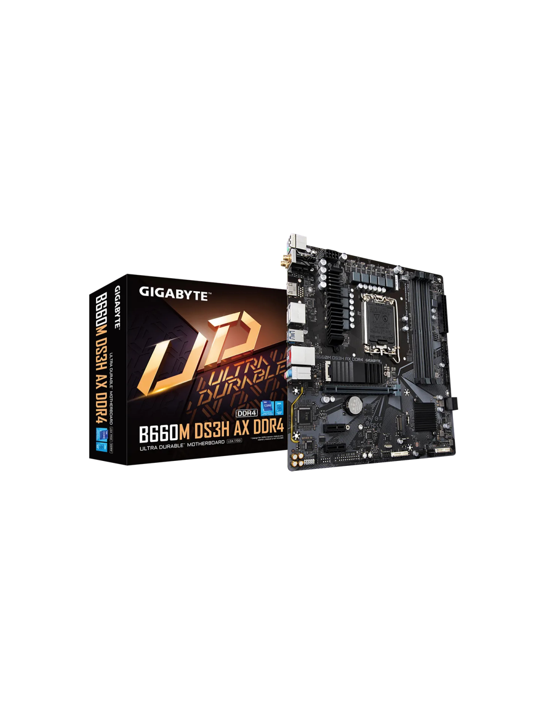 GIGABYTE B660M DS3H AX DDR4. Fabricante de procesador: Intel, Socket de procesador: LGA 1700, Procesador compatible: Intel® Celeron®, Intel® Core™ i3, Intel® Core™ i5, Intel® Core™ i7, Intel® Core™ i9,.... tipos de memoria compatibles: DDR4-SDRAM, Memoria interna máxima: 128 GB, Tipo de ranuras de memoria: DIMM. Interfaces de disco de almacenamiento soportados: M.2, PCI Express 4.0, SATA III, Tipos de unidades de almacenamiento admitidas: HDD & SSD, Niveles RAID: 0, 1, 5, 10. Tipo de interfaz ethernet: 2.5