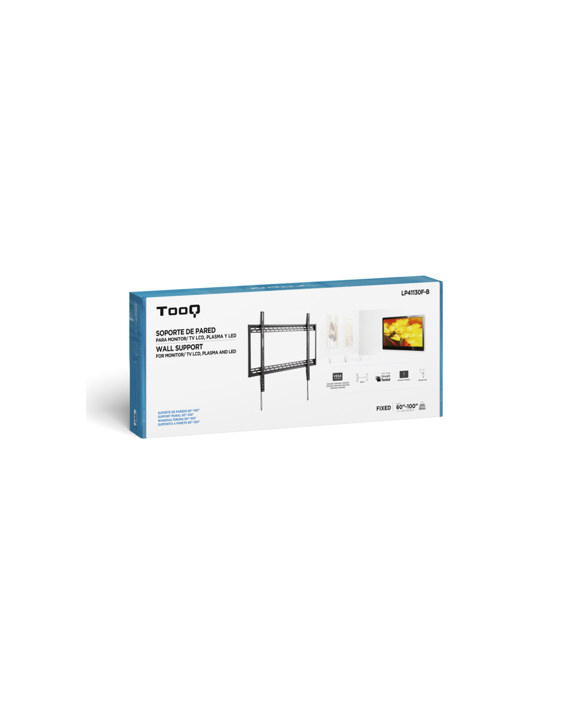 TooQ Soporte de pared (monitor / plasma / LCD / LED) 60” - 100”. Capacidad máxima de peso: 130 kg, Tamaño mínimo de pantalla: 152,4 cm (60"), Tamaño máximo de pantalla: 2,54 m (100"), Compatibilidad con interfaz de montaje (min): 200 x 200 mm, Compatibilidad con interfaz de montaje (max): 900 x 600 mm. Distancia a la pared (max): 3,2 cm. Color del producto: Negro