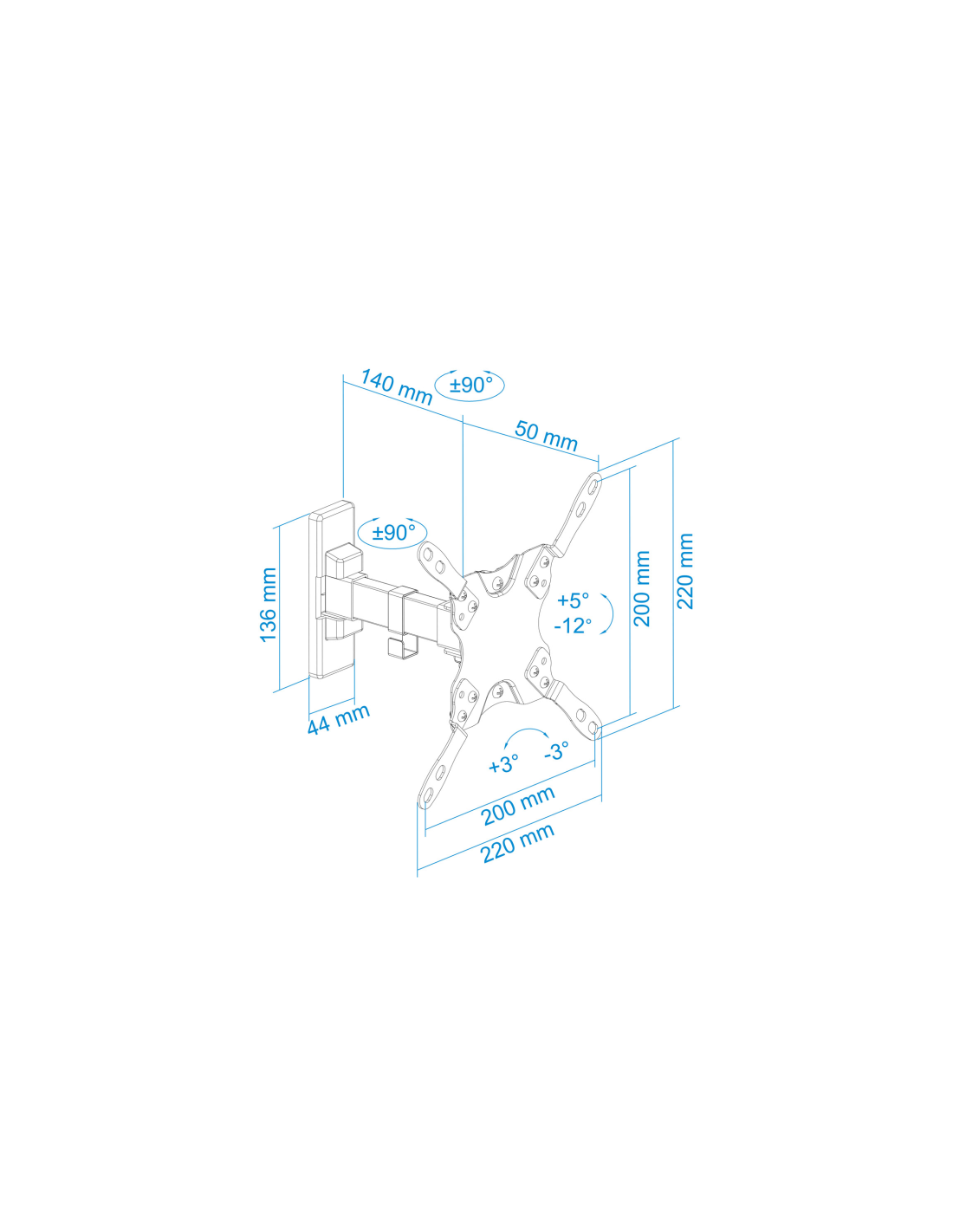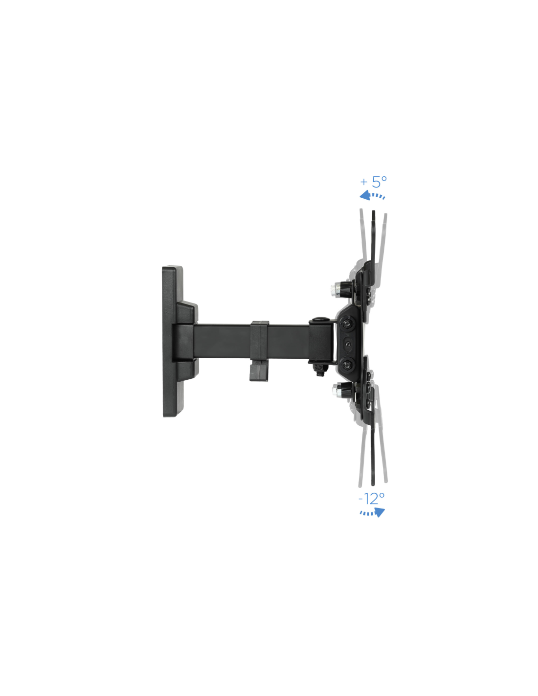 Soporte vertical de fijación en pared para pantallas planas de 13" a 42" y hasta un máximo de 20kg de peso. Permite configurar la inclinación de -12º ~ +5º sobre el plano vertical y con un ángulo de giro de 180º sobre el plano horizontal.