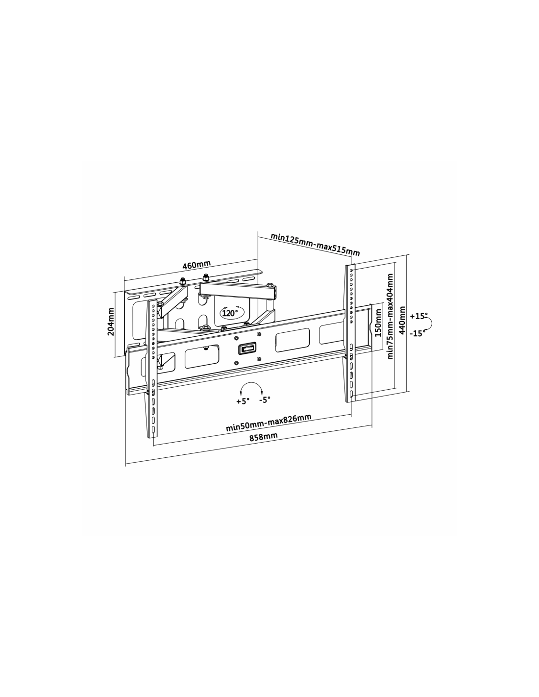 AISENS WT70TSLE-029. Capacidad máxima de peso: 60 kg, Tamaño mínimo de pantalla: 94 cm (37"), Tamaño máximo de pantalla: 2,29 m (90"), Compatibilidad con interfaz de montaje (min): 200 x 200 mm, Compatibilidad con interfaz de montaje (max): 800 x 400 mm. Ángulo de inclinación: -15 - 15°, Distancia a la pared (min): 12,5 cm, Distancia a la pared (max): 51,5 cm. Color del producto: Negro