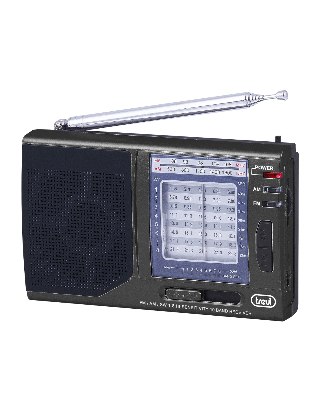 Trevi MB 728. Tipo de radio: Portátil, Tipo de sintonizador: Analógica, Bandas de radio soportadas: AM, FM, SO. Potencia estimada RMS: 0,1 W. Tipo de altavoces: De 1 vía, Obstrucción: 32 O. Tipo de visualizador: Analógica. Auriculares: 3,5 mm