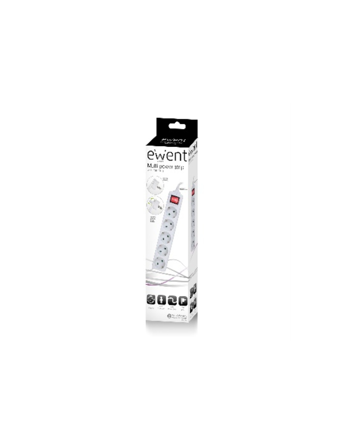 Ewent EW3955. Longitud de cable: 1,5 m, Colocación soportada: Interior, Tipo de salida AC: Tipo F. Cantidad de salidas AC: 5 salidas AC