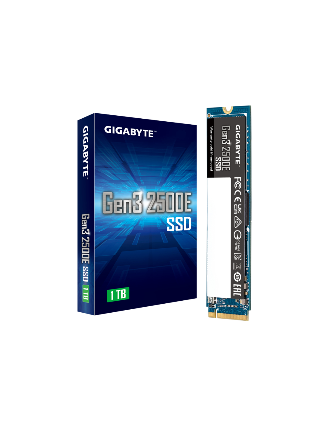 GIGABYTE Gen3 2500E SSD 1TB. SDD, capacidad: 1 TB, Factor de forma de disco SSD: M.2, Velocidad de lectura: 2400 MB/s, Velocidad de escritura: 1800 MB/s, Componente para: PC/ordenador portátil