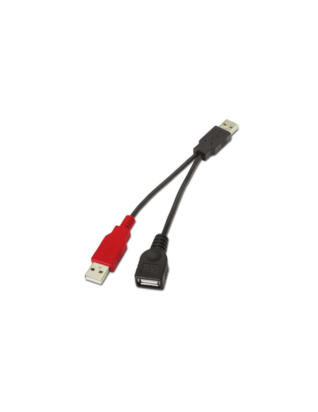 AISENS A101-0030. Longitud de cable: 0,15 m. Conector 1: 2 x USB A, Conector 2: USB A, Versión USB: USB 2.0, Color del producto: Negro, Rojo