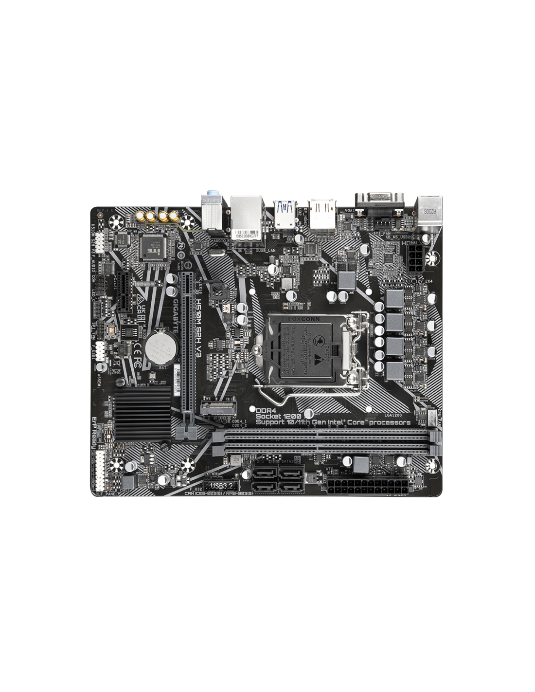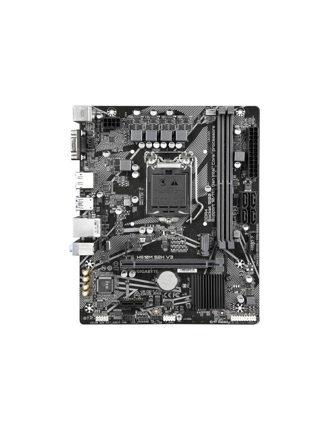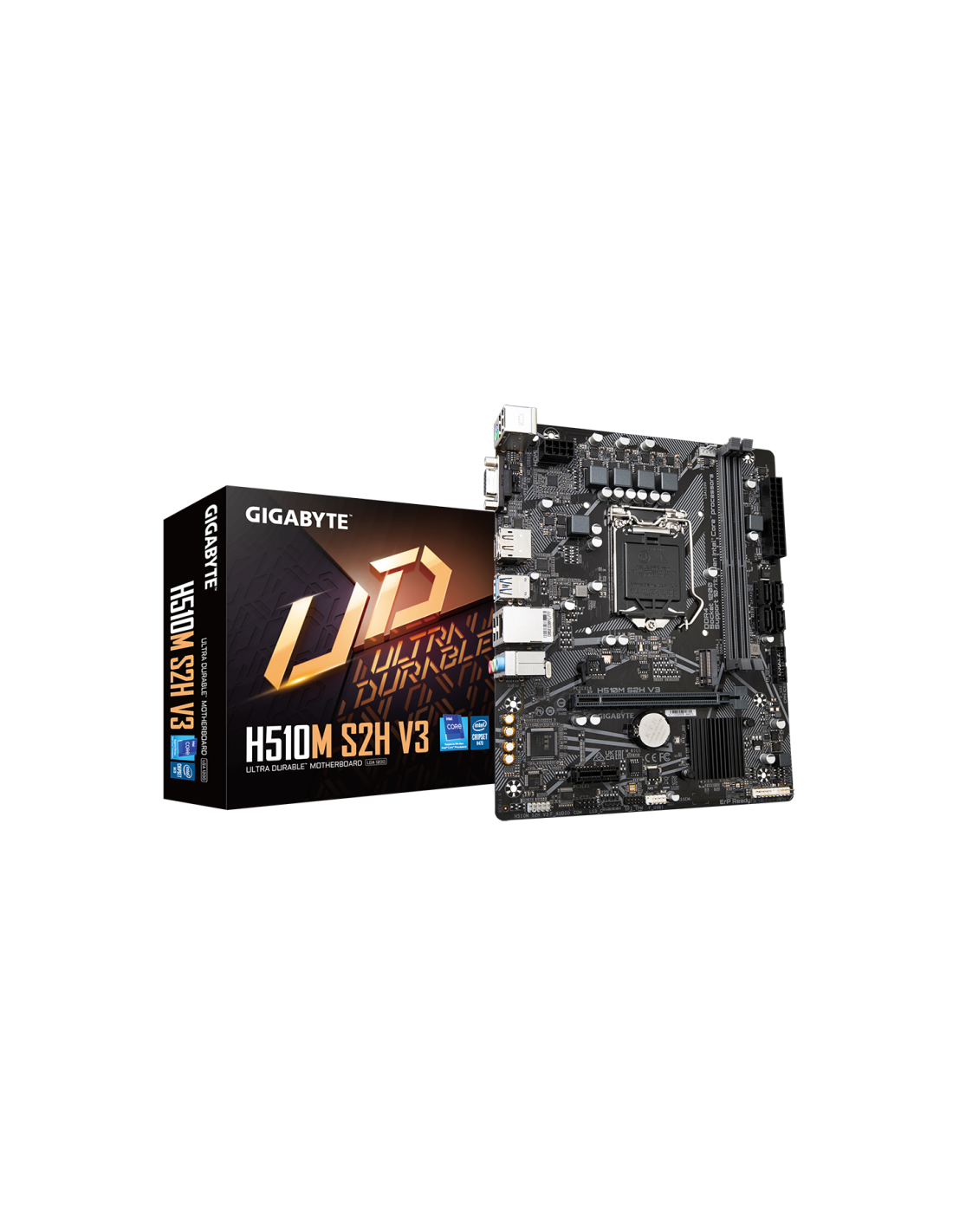 GIGABYTE H510M S2H V3 Placa base - Compatible con procesadores Intel Core 11th CPUs, up to 3200MHz DDR4, 1xPCIe 3.0 M.2, GbE LAN, USB 3.2 Gen 1. Fabricante de procesador: Intel, Socket de procesador: LGA 1200 (Socket H5), Procesador compatible: Intel® Celeron®, Intel® Core™ i3, Intel® Core™ i5, Intel® Core™ i7, Intel® Core™ i9, Intel® Pentium®. tipos de memoria compatibles: DDR4-SDRAM, Memoria interna máxima: 64 GB, Tipo de ranuras de memoria: DIMM. Interfaces de disco de almacenamiento soportados: M.2, PCI