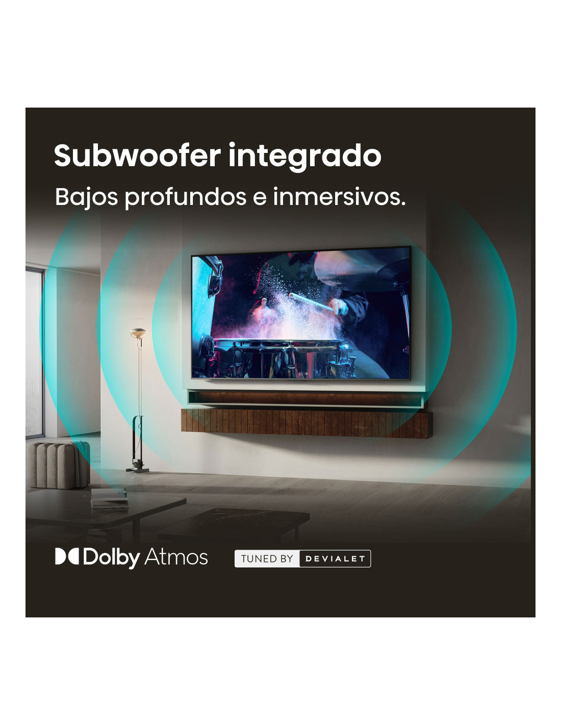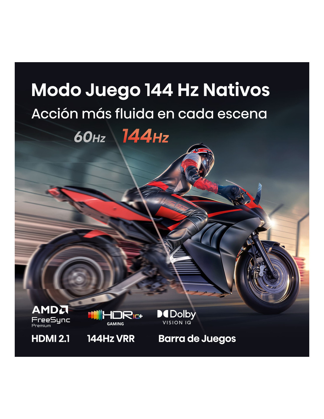 Hi-QLED MiniLED, Modo Juego 144 Hz Nativos, Subwoofer integrado, Hi-View AI Engine, Hi-QLED Color, Total HDR Solution, Filmmaker Mode, Control por manos libres.