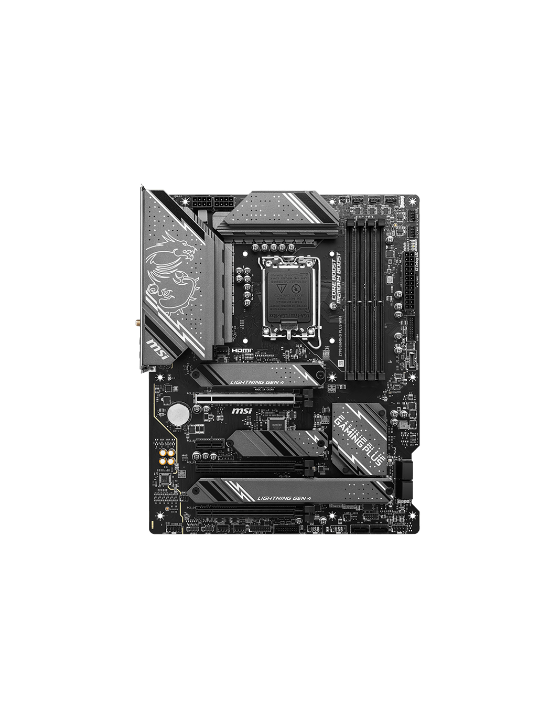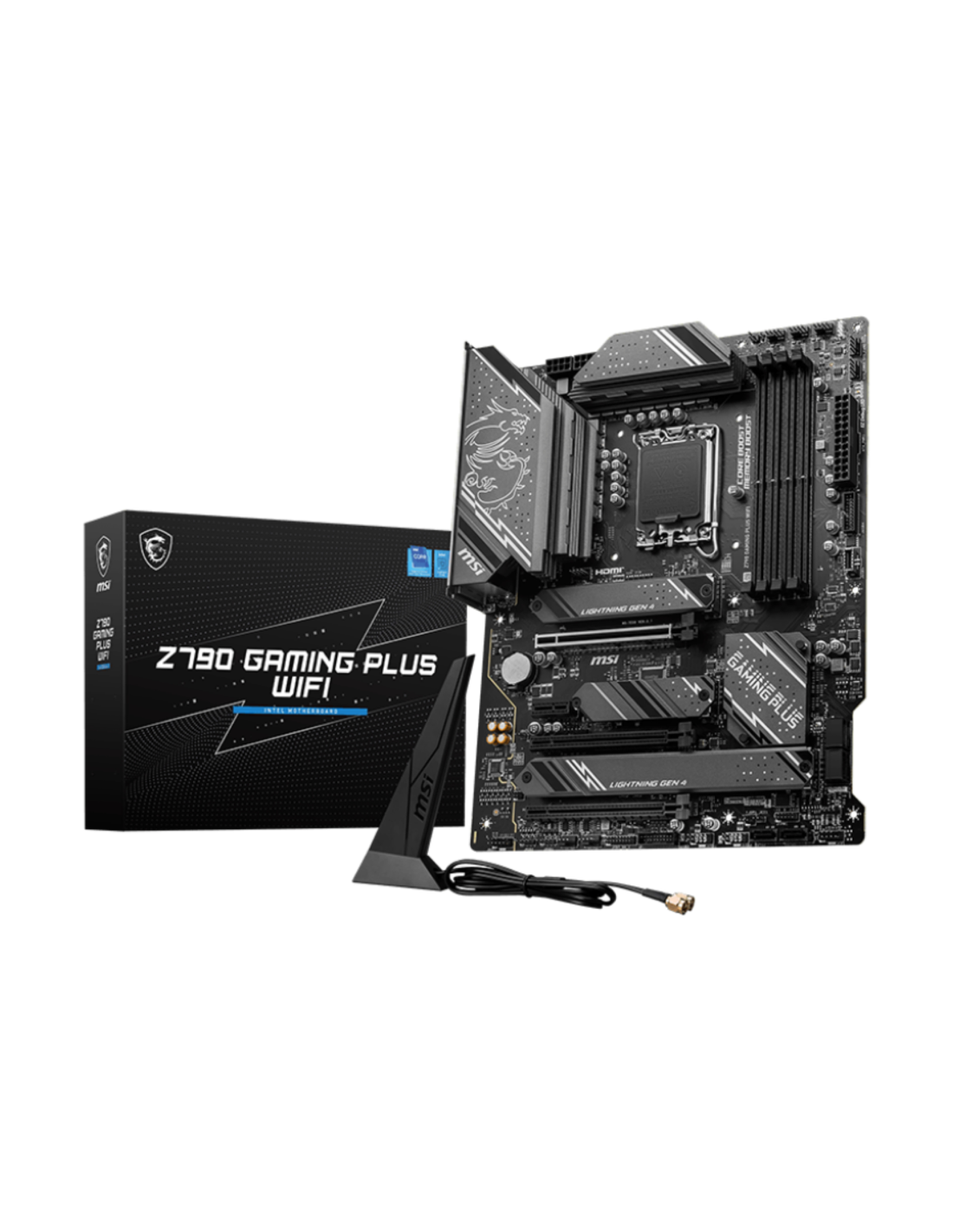 MSI Z790 GAMING PLUS WIFI. Fabricante de procesador: Intel, Socket de procesador: LGA 1700, Procesador compatible: Intel® Celeron®, Intel® Pentium® Gold. tipos de memoria compatibles: DDR5-SDRAM, Memoria interna máxima: 192 GB, Compatibilidad de ECC: No-ECC. Interfaces de disco de almacenamiento soportados: M.2, PCI Express, Tipos de unidades de almacenamiento admitidas: HDD & SSD, Niveles RAID: 0, 1, 5, 10. Tipo de interfaz ethernet: 2.5 Gigabit Ethernet, Estándar Wi-Fi: Wi-Fi 6 (802.11ax), Wi-Fi estándare