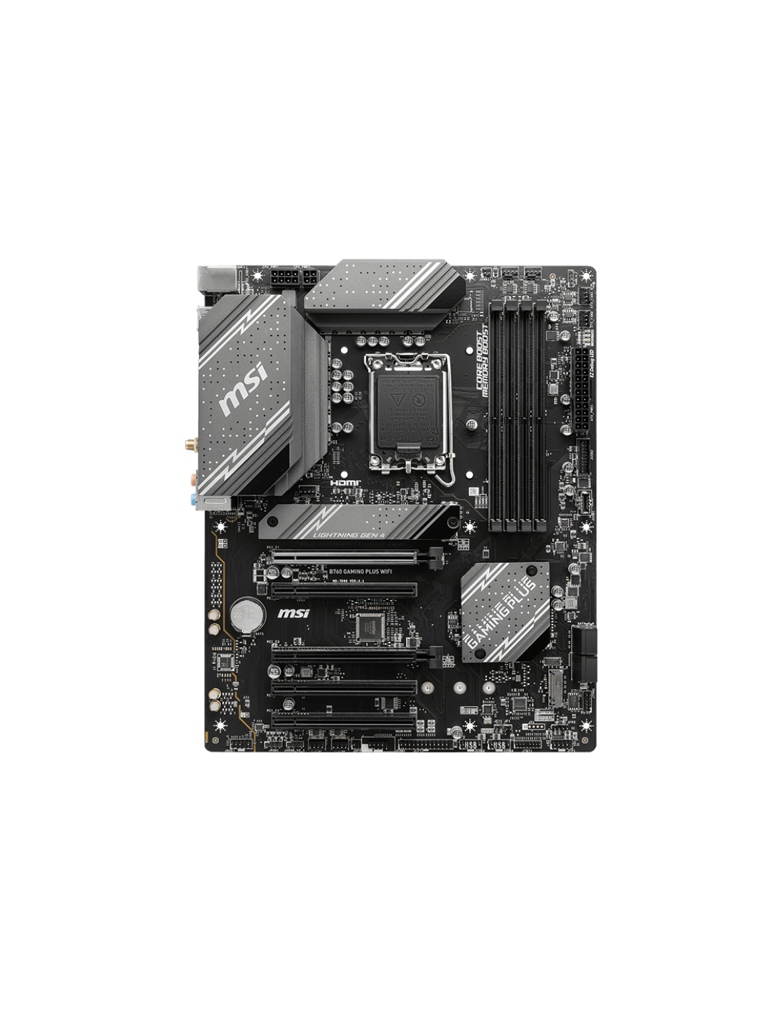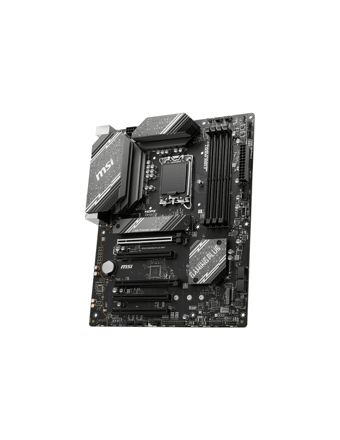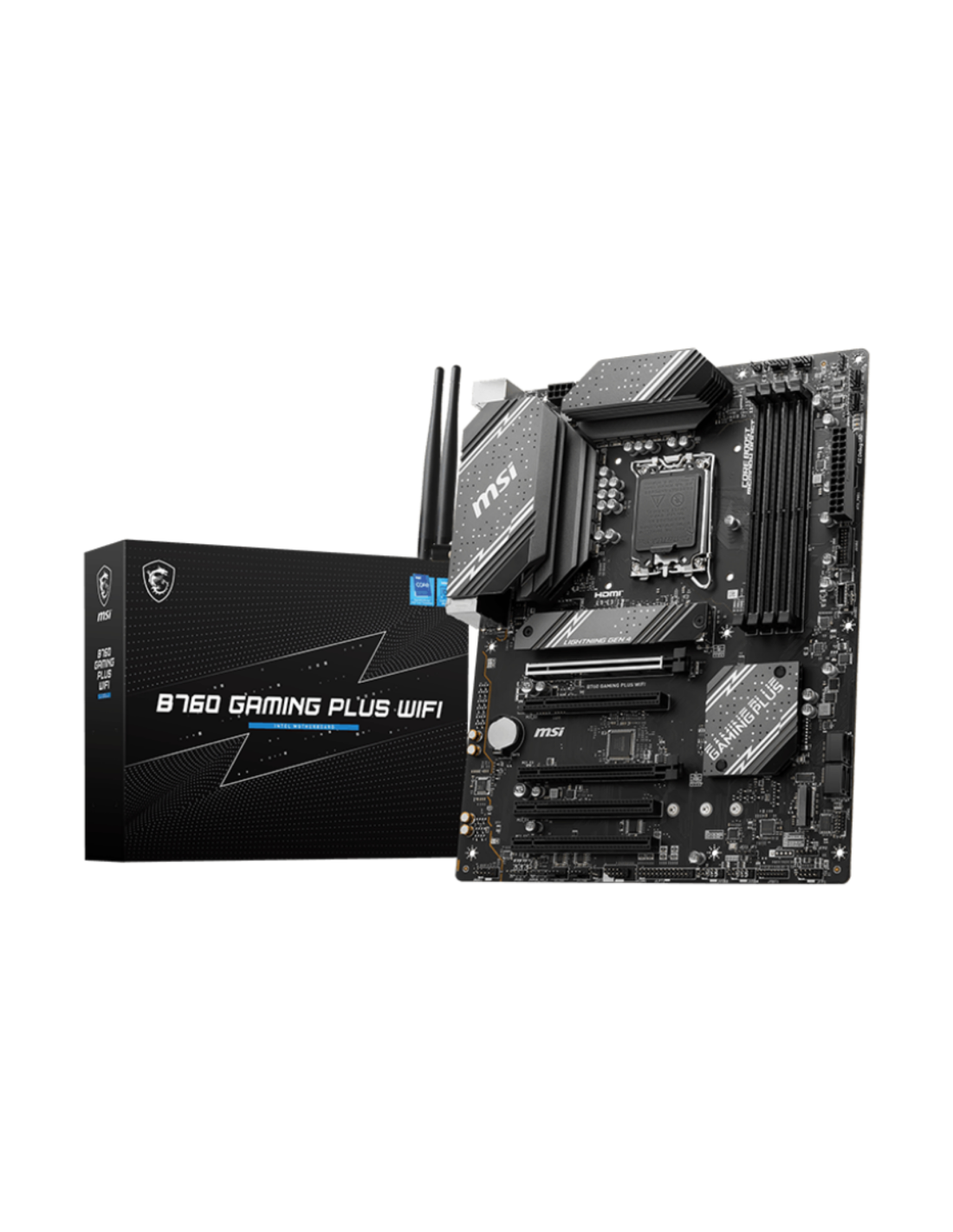 MSI B760 GAMING PLUS WIFI. Fabricante de procesador: Intel, Socket de procesador: LGA 1700, Procesador compatible: Intel® Celeron®, Intel® Pentium® Gold. tipos de memoria compatibles: DDR5-SDRAM, Memoria interna máxima: 192 GB, Tipo de ranuras de memoria: DIMM. Interfaces de disco de almacenamiento soportados: M.2, SATA, Niveles RAID: 0, 1, 5, 10. Tipo de interfaz ethernet: 2.5 Gigabit Ethernet, Controlador LAN: Dragon RTL8125BG, Estándar Wi-Fi: Wi-Fi 6E (802.11ax). Componente para: PC, Factor de forma: ATX
