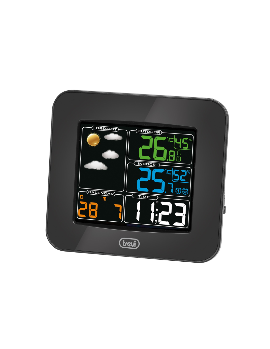 Trevi ME 3165 RC. Color del producto: Negro, Funciones de medición: Barómetro de interior, Termómetro de interior, Barómetro para exteriores, Termómetro para exteriores, Tendencia en pantalla de función de medida: Termómetro. Tipo de visualizador: LCD, Diagonal de la pantalla: 30,5 cm (12"). Fuente de energía: AC/Batería, Tipo de batería: AAA. Ancho del paquete: 220 mm, Profundidad del paquete: 50 mm, Altura del paquete: 140 mm