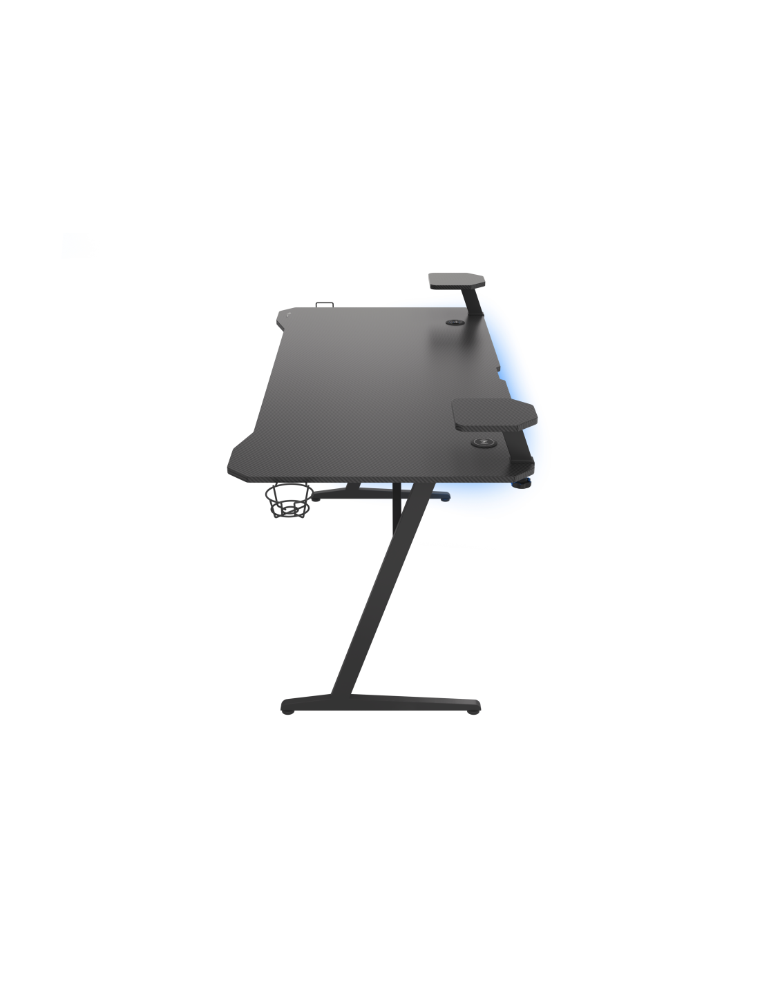 Los jugadores profesionales requieren soluciones avanzadas. Por eso el escritorio Holm 510 RGB está equipado con numerosos estantes y soportes dedicados que son extraíbles y permiten instalarlos en un lugar conveniente. Estantes para altavoces, soportes para auriculares y una taza ahorrarán espacio en la encimera y ordenarán el espacio perfectamente. Debajo de la mesa, hay un organizador de cables gracias al cual dejará los cables ocultos y les proporcionará un lugar seguro para trabajar.