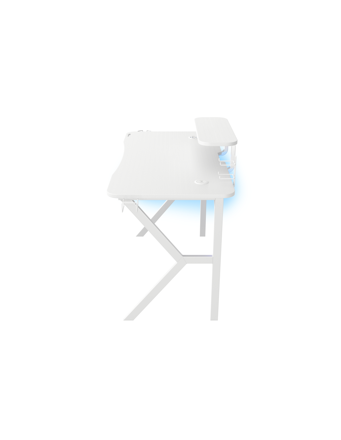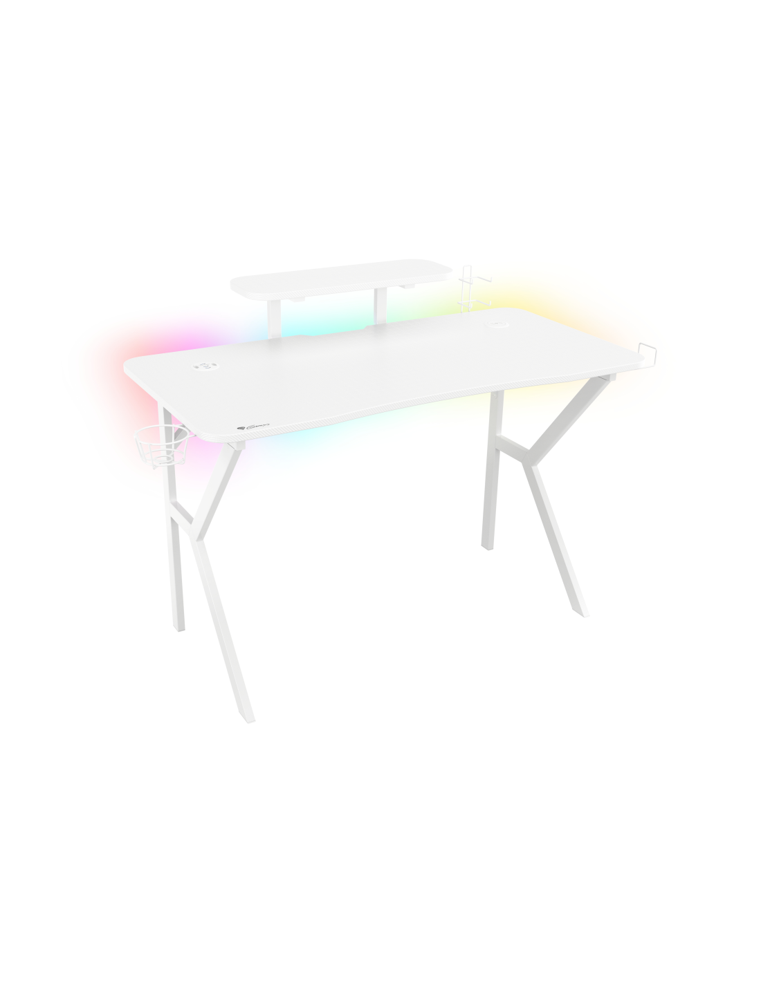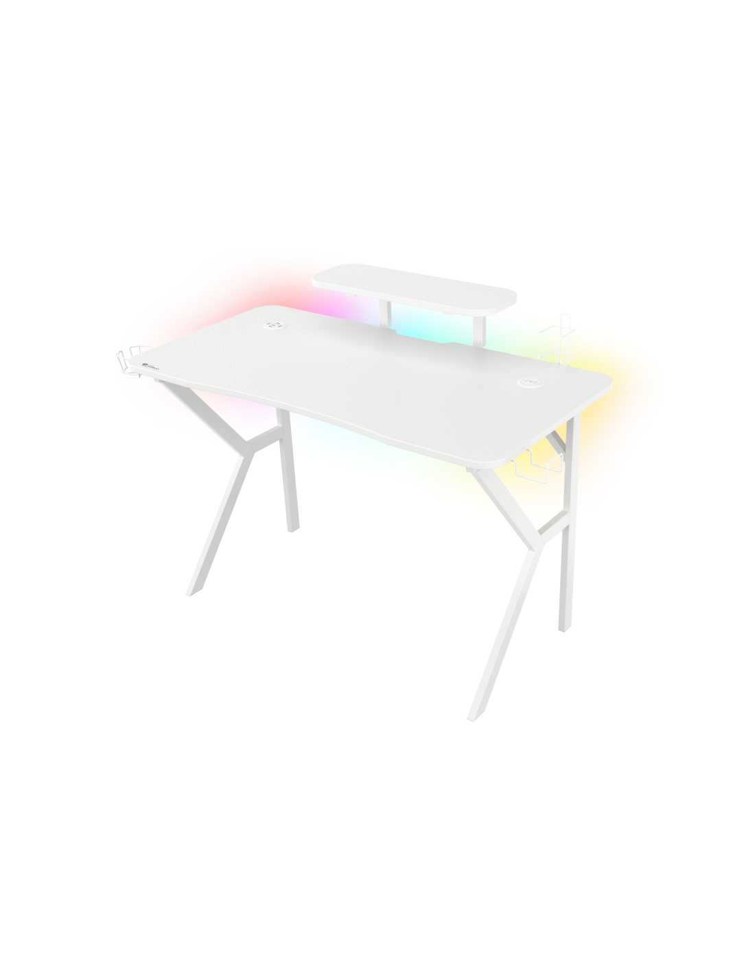 Cada elemento del escritorio está fabricado en color blanco. El acabado en carbono del tablero combinado con la fenomenal retroiluminación RGB te permitirá crear un soporte gaming único. El mando a distancia incluido te permitirá controlar numerosos modos y efectos para adaptarlos a tus preferencias.