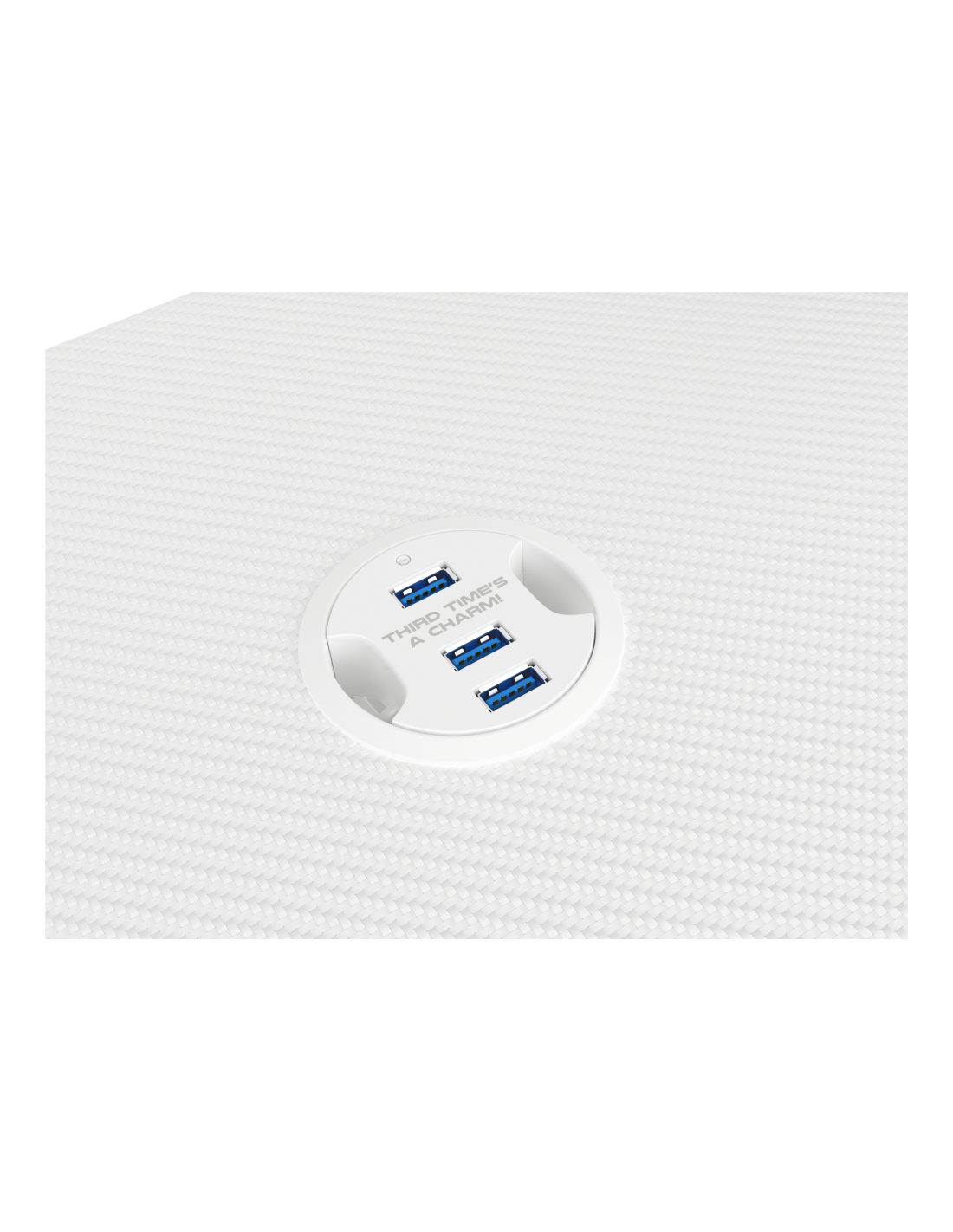 El escritorio está equipado con un HUB con tres puertos USB 3.0 y cubículos para cables para conectar equipos adicionales y organizar los cables. El cargador inductivo inalámbrico integrado en el tablero te permitirá cargar tu dispositivo móvil en cualquier momento y tenerlo siempre a la vista. Apuesta por soluciones prácticas y no te limites
